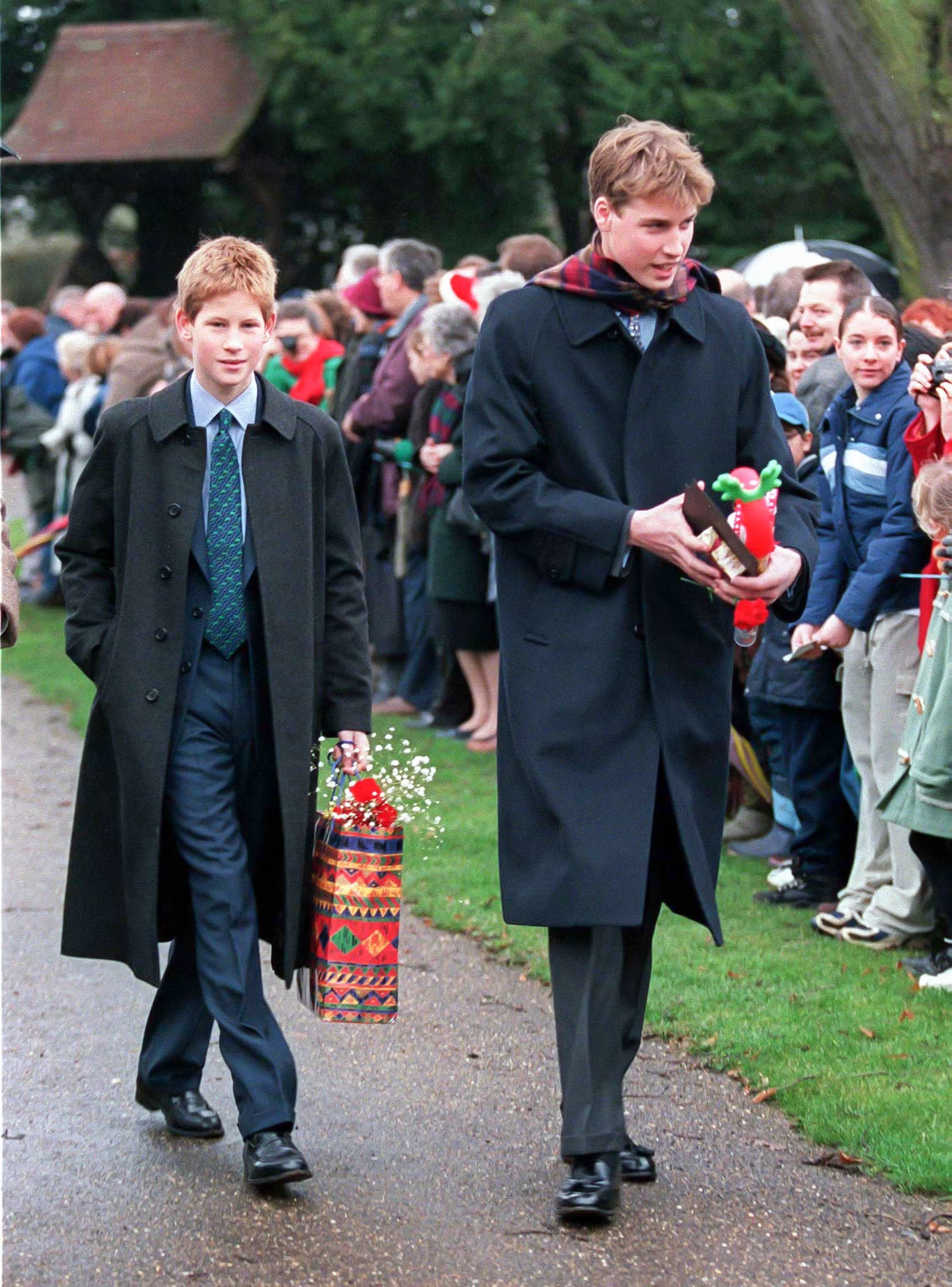 Prince Harry dan Prince William menghadiri kebaktian tahunan Hari Natal di Sandringham Church pada tahun 1998.