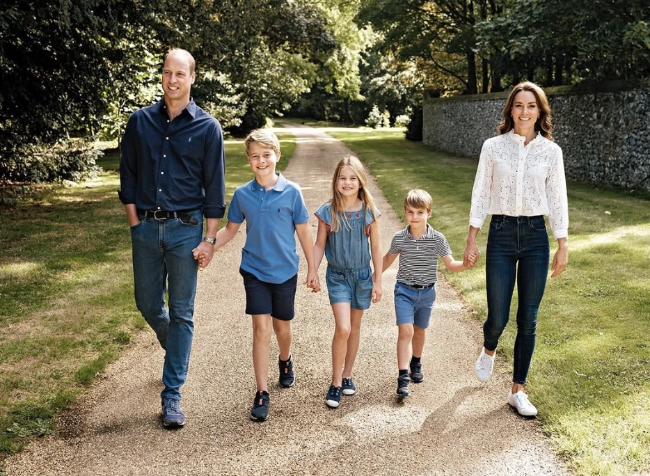 Kartu Natal 2022 milik Pangeran William dan Putri Kate menampilkan seluruh keluarga berjalan bergandengan tangan dalam busana bernuansa biru yang serasi.