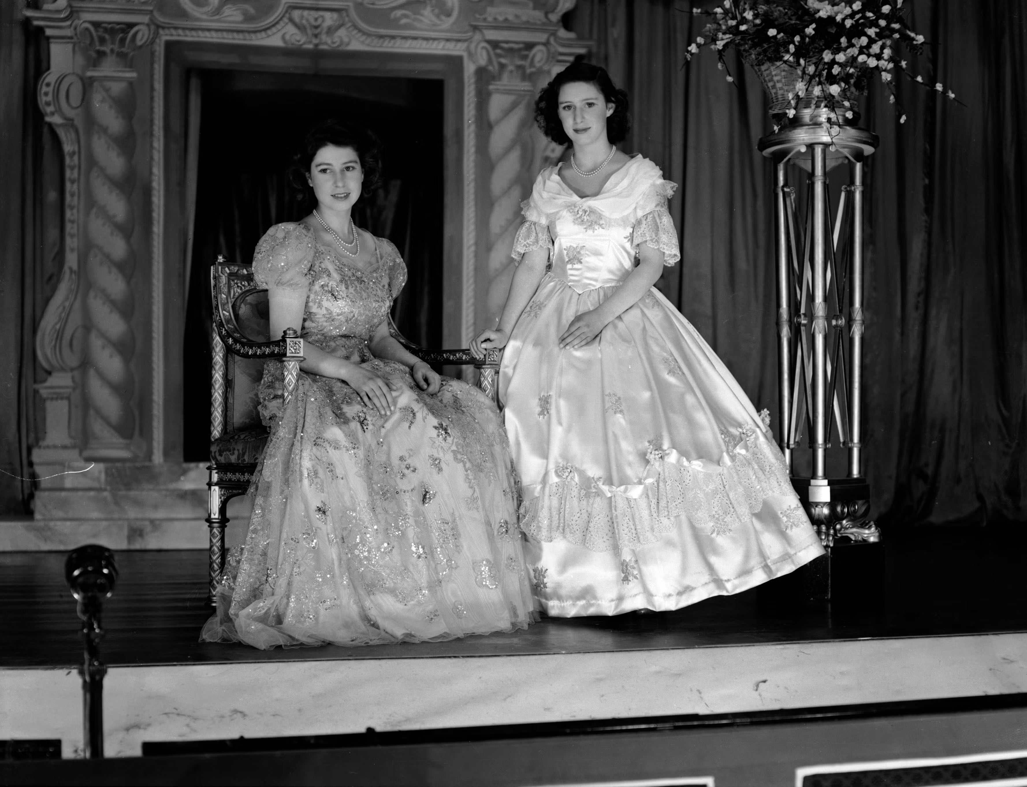 Saat itu Putri Elizabeth dan saudara perempuannya, Putri Margaret, berdandan untuk penampilan pantomim Natal mereka di Windsor Castle.