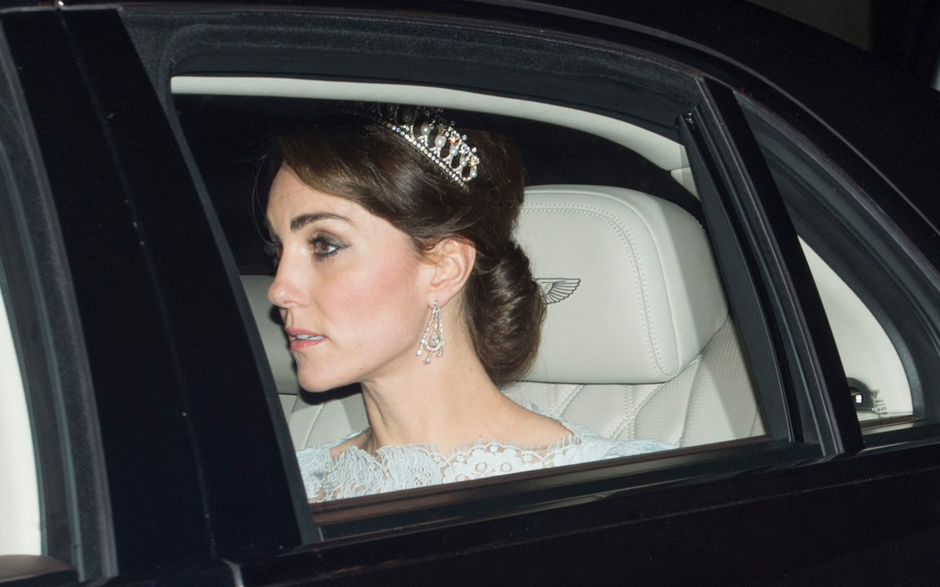 Putri Kate terlihat mengenakan Lover’s Knot Tiara lagi saat kembali dari jamuan kenegaraan di Istana Buckingham selama kunjungan resmi Spanyol oleh Raja Felipe dan Ratu Letizia.