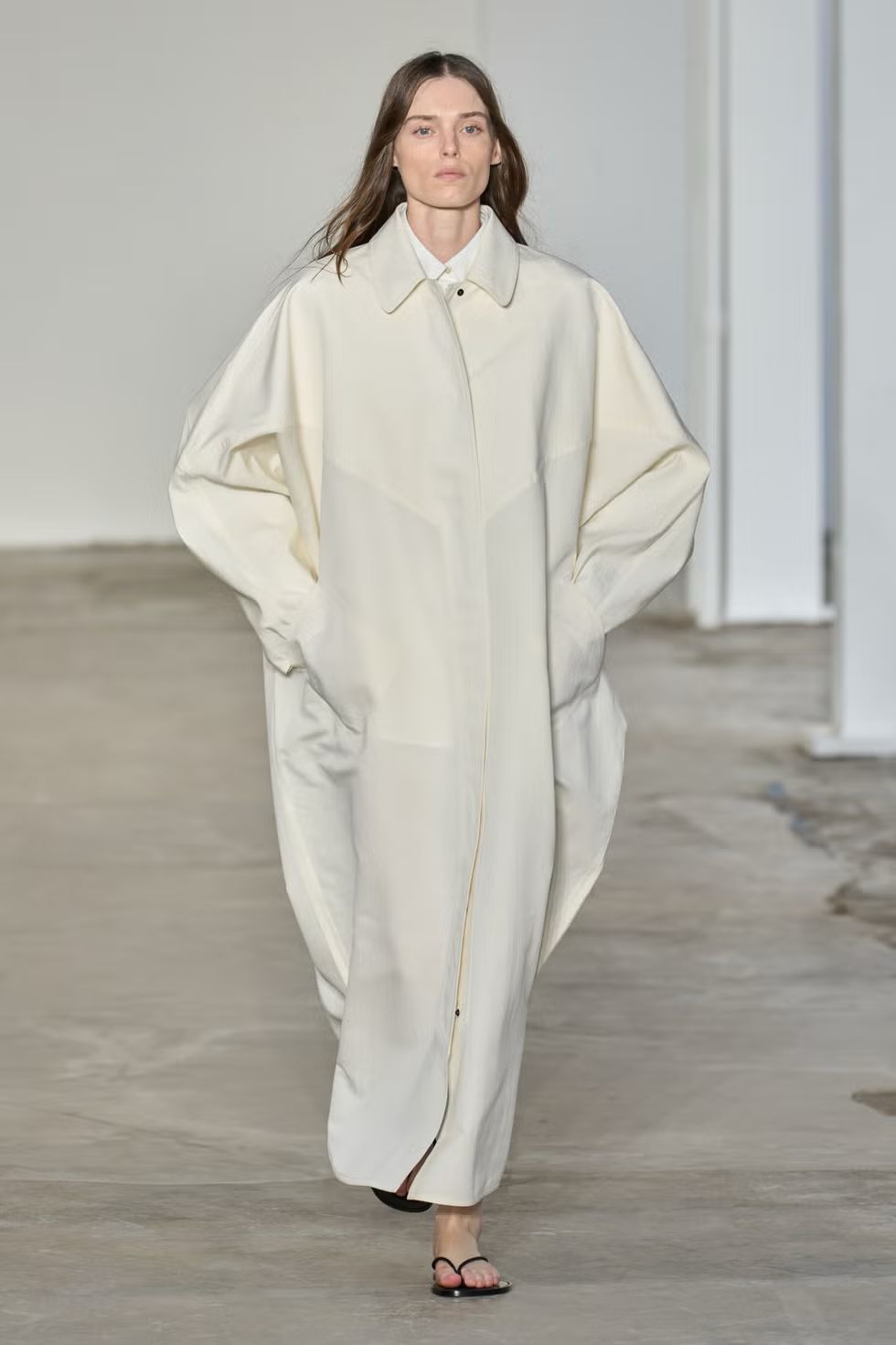 Melihat presentasi Spring 2026, saya tak bisa tidak memperhatikan kecenderungan para desainer untuk membuka show mereka dengan ansambel serba hitam, terutama di New York. Calvin Klein, Diotima, Fforme, Colleen Allen semuanya memulai koleksi mereka dengan berbagai tampilan putih. Sekilas, pilihan ini terasa seperti penyegar palet layaknya sorbet dalam makan berlapis-lapis di fashion week. Namun bagi penonton, tampilannya lebih seperti kejutan besar. All-white look itu cukup mengguncang.