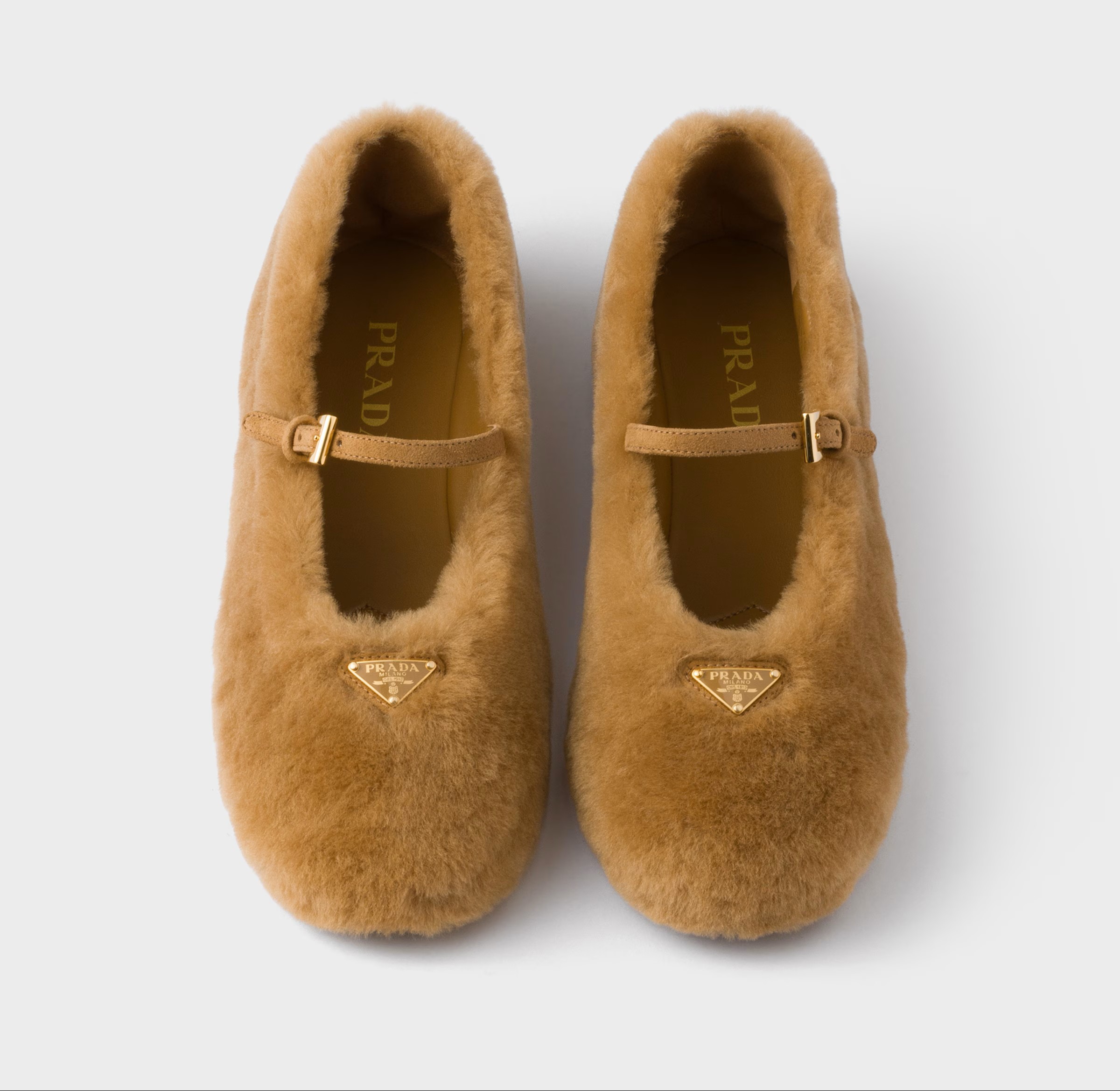 Ballerina berbahan shearling ini menghadirkan sentuhan lembut yang memberi rasa hangat sekaligus kenyamanan saat digunakan. Siluetnya tetap ramping sehingga mendukung tampilan kasual yang rapi. Kombinasi tekstur dan desain yang tidak berlebihan menjadikan item ini opsi gifting yang fungsional namun tetap berkelas.