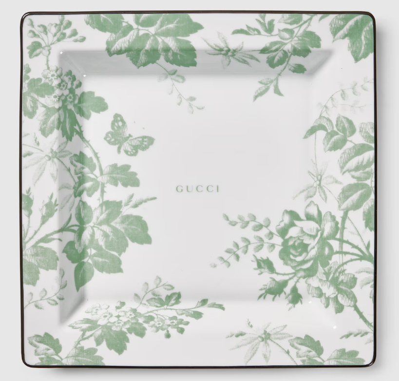 Tray serbaguna ini dihiasi motif Herbarium khas Gucci yang menambah karakter visual pada ruang. Materialnya solid dan tahan lama, cocok digunakan sebagai tempat perhiasan atau aksesori kecil. Fungsinya dapat menyesuaikan kebutuhan sekaligus mempercantik meja rias atau ruang kerja.