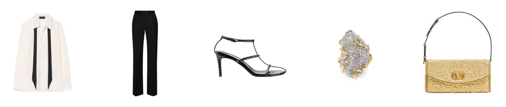 Malam Tahun Baru selalu identik dengan glamor. Ambil inspirasi dari Yves Saint Laurent dengan gaya Le Smoking yang menampilkan referensi tuxedo tanpa jas. Untuk tetap rapi tetapi santai, pilih kemeja sutra dengan detail dasi yang bisa dibiarkan longgar atau diikat lembut, dipadukan celana lurus. Pecahkan dominasi hitam-putih dengan aksesori emas yang memberi tekstur, seperti tas kulit laminated atau cincin berdesain organik.