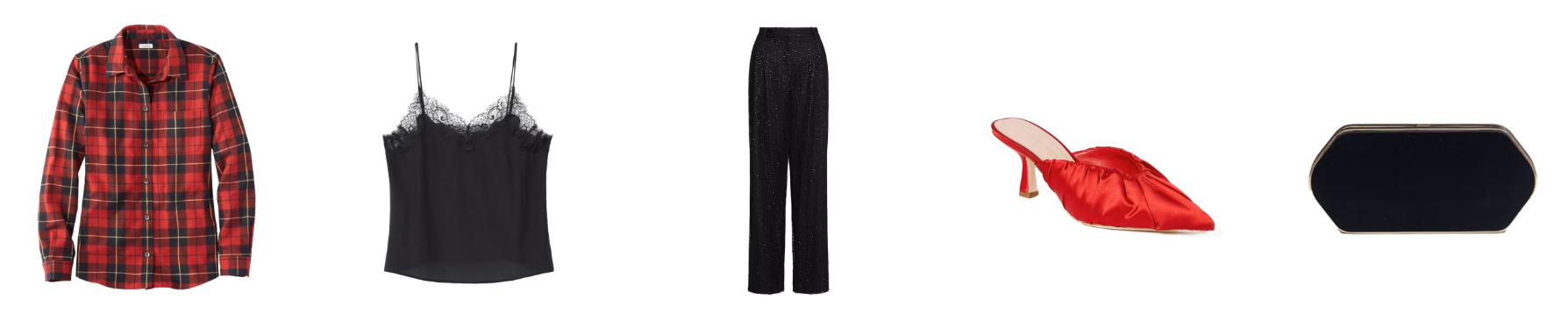 Salah satu hal menyenangkan dari waktu ini adalah keinginan untuk bertemu semua orang sebelum tahun berganti—seringnya di tempat hangout favorit. Anda ingin tampil kasual, tetapi musim ini mengundang untuk sedikit berdandan. Angkat flanel kotak-kotak biasa dengan cami renda dan celana lurus berpayet lembut.