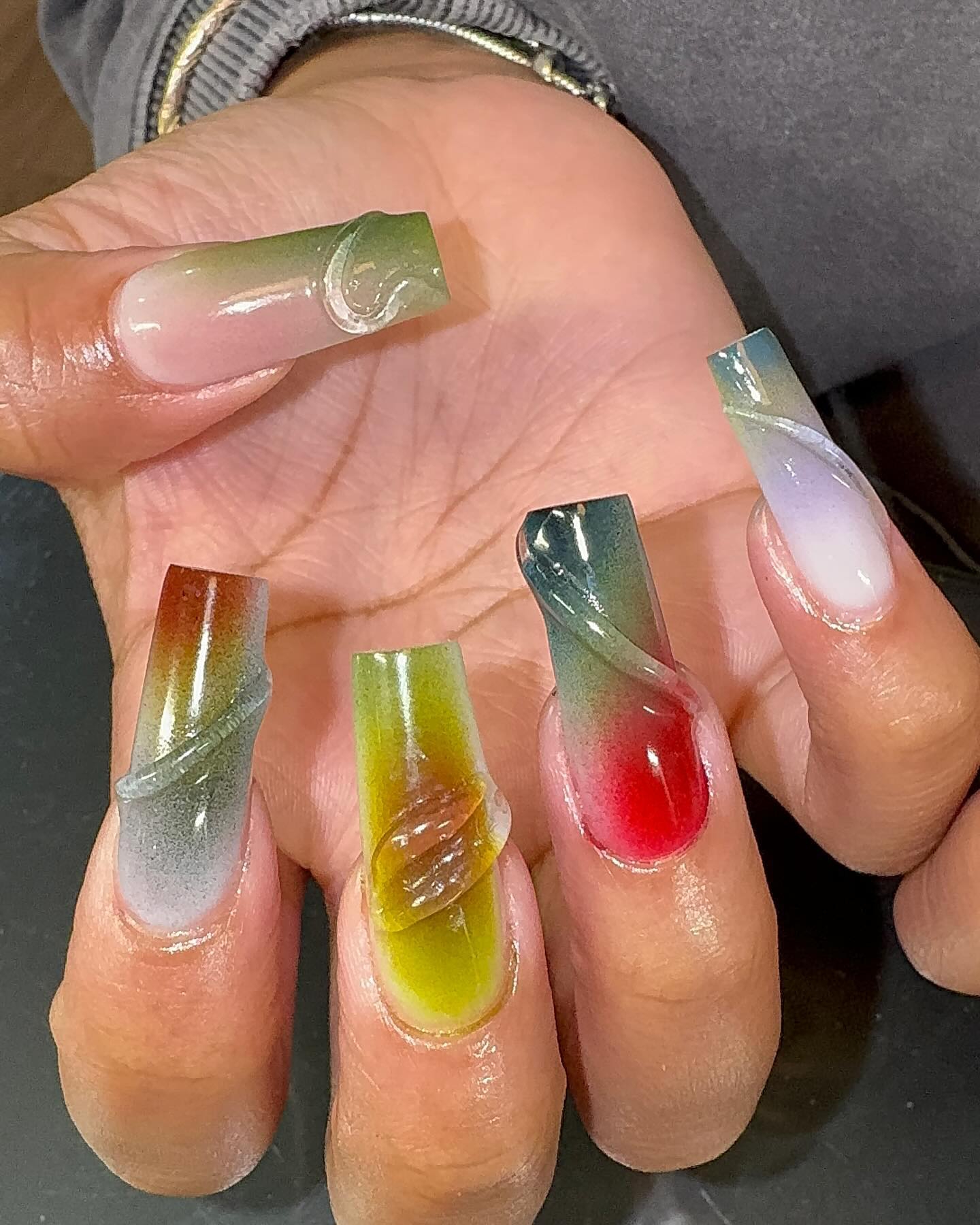 Tren jelly nails yang mendominasi beberapa tahun terakhir juga tidak akan melambat, menurut Pinterest, yang memasukkan tekstur gummy sebagai salah satu prediksi tren 2026. Meski begitu, estetika ini diperkirakan akan tampil lebih besar dan lebih bold, dengan desain kuku 3D serta detail tebal yang terlihat “rubbery”.