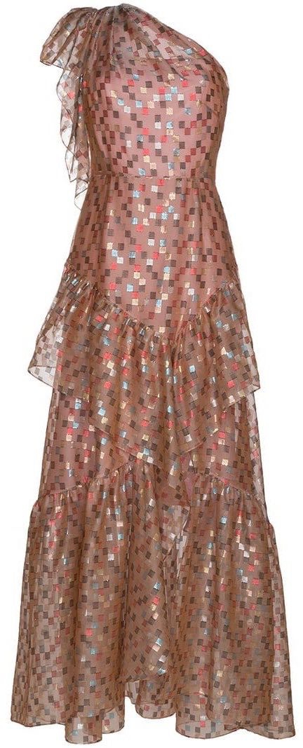 Terusan one shoulder karya label asal Inggris, Peter Pilotto, dengan siluet asimetris dapat Anda pilih untuk mengiringi penampilan Anda secara dramatis.
