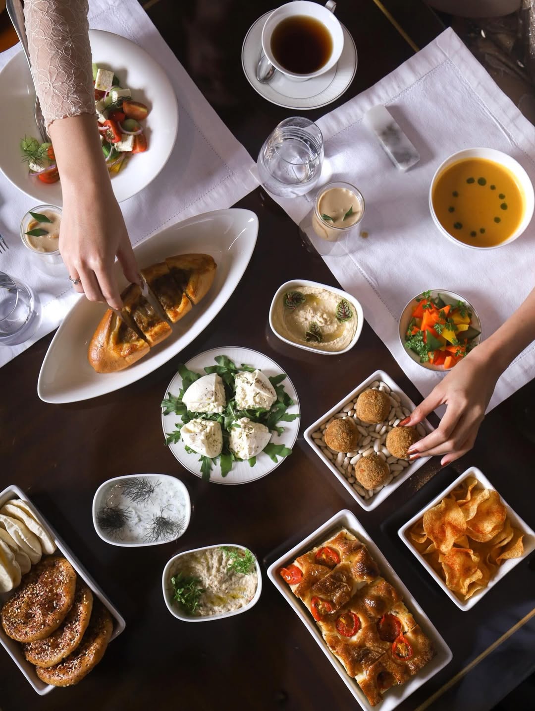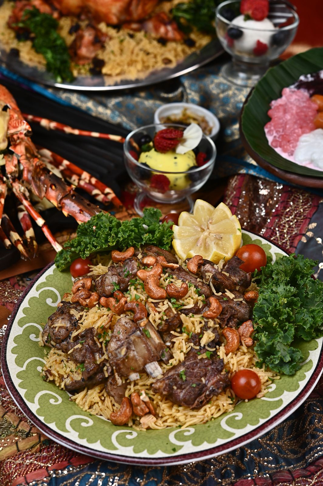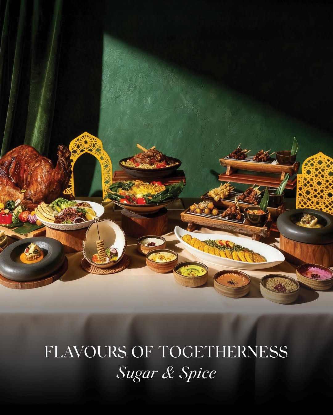 Terinspirasi dari megahnya nuansa pasar di Timur Tengah dengan keramahan khas Indonesia, ruang serbaguna The Dharmawangsa diubah menjadi ruang yang mewah untuk pengalaman Iftar yang tak terlupakan. Prasmanan makanan ini menggabungkan rasa Indonesia, Timur Tengah, dan internasional.