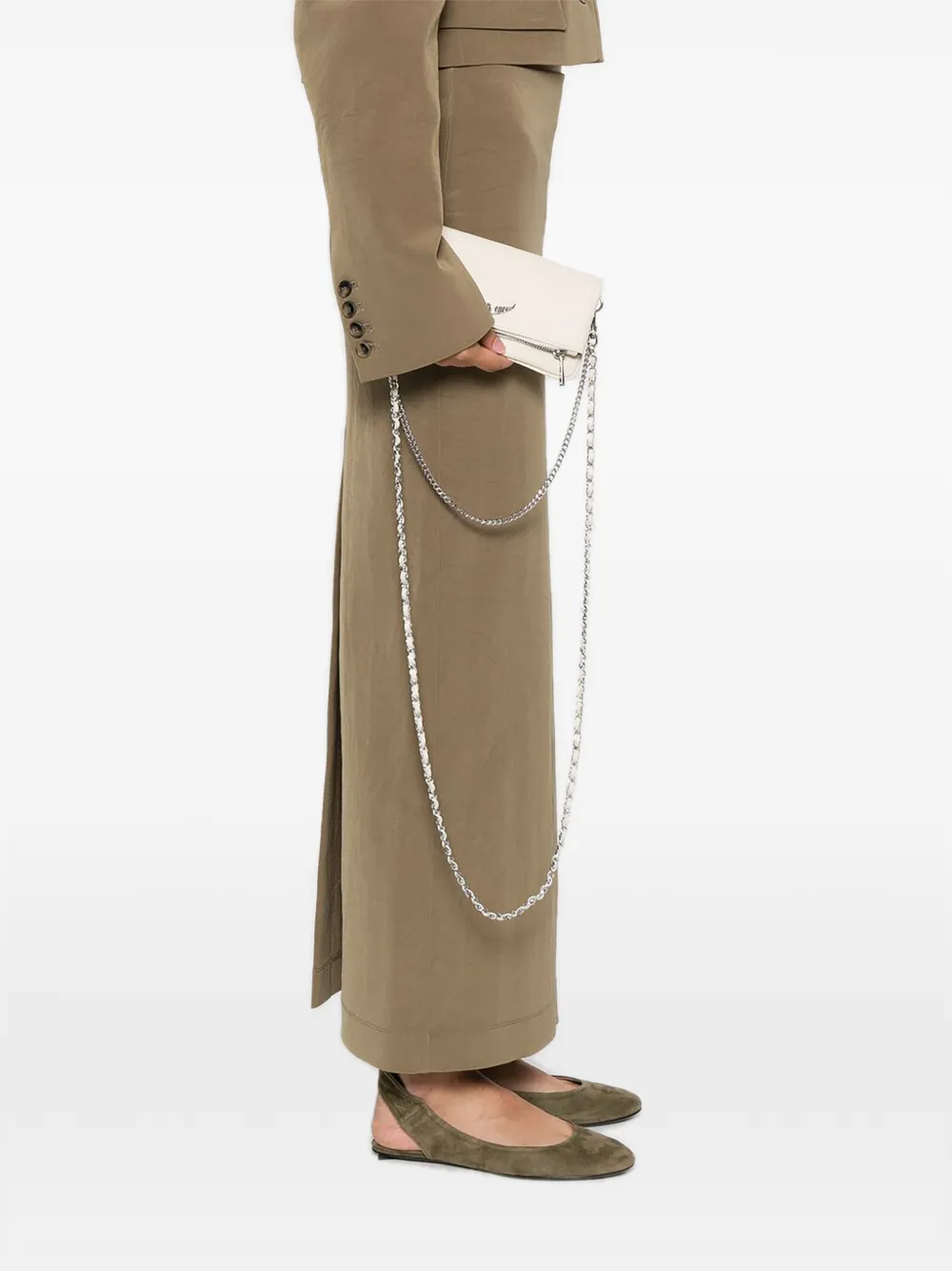 Tas dengan tali rantai memberikan sentuhan glamor yang tetap subtil. Pilih rantai dengan warna soft gold atau silver matte agar tidak terlalu mencolok.