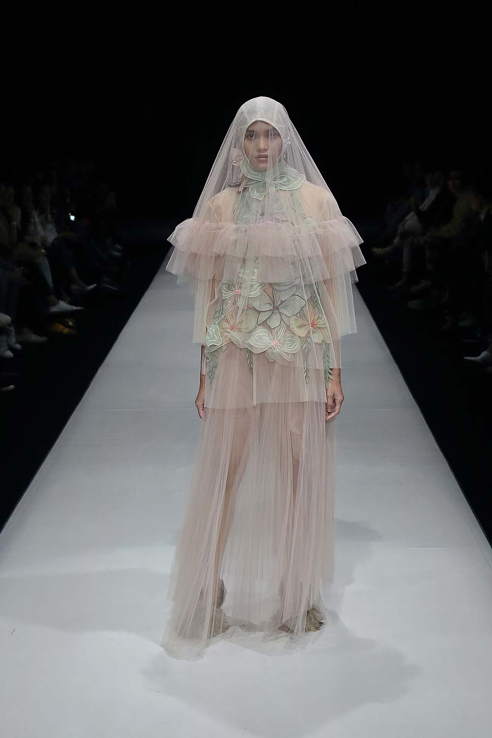 Busana yang kaya embroidery serta detail yang menarik dihadirkan Toton dan berhasil menuai decam kagum para tamu yang menyaksikan. Bahkan pergelaran fashion ini terlihat lebih menarik berkat material yang digunakan, mulai dari denim, bulu, sifon dengan aksen pleats dan siluet menswear tailoring serta oversized yang diterapkan, membuat berbagai karakteristik wanita hadir dan terwakili.