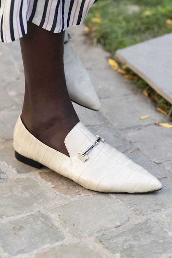 Selain flat shoes, sepatu model loafers juga mendominasi tren musim panas 2020, miliki sepatu loafers dengan desain yang menampilkan detail embossed layaknya sepatu lansiran Roland Mouret.