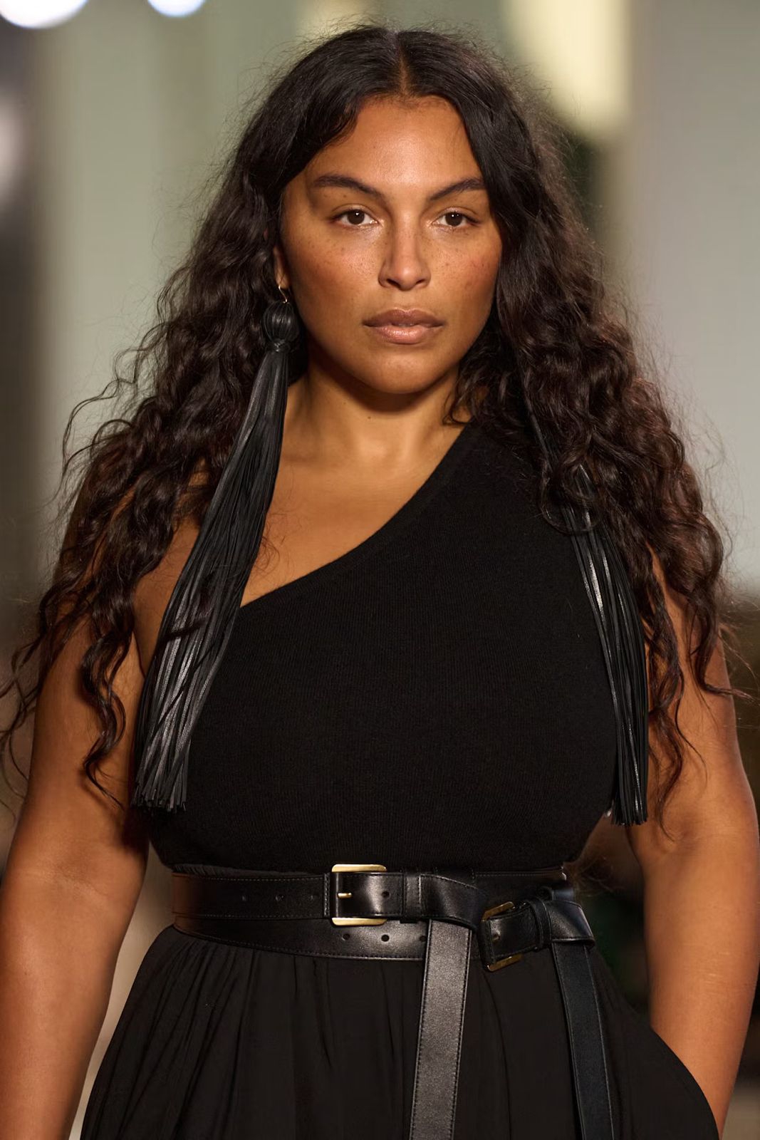 Gelombang yang mengalir bebas hampir selalu menjadi beauty staple di runway Ralph Lauren di setiap musim. Untuk presentasi Spring/Summer 2026, para model menata rambut mereka dengan berbagai undone center parts.