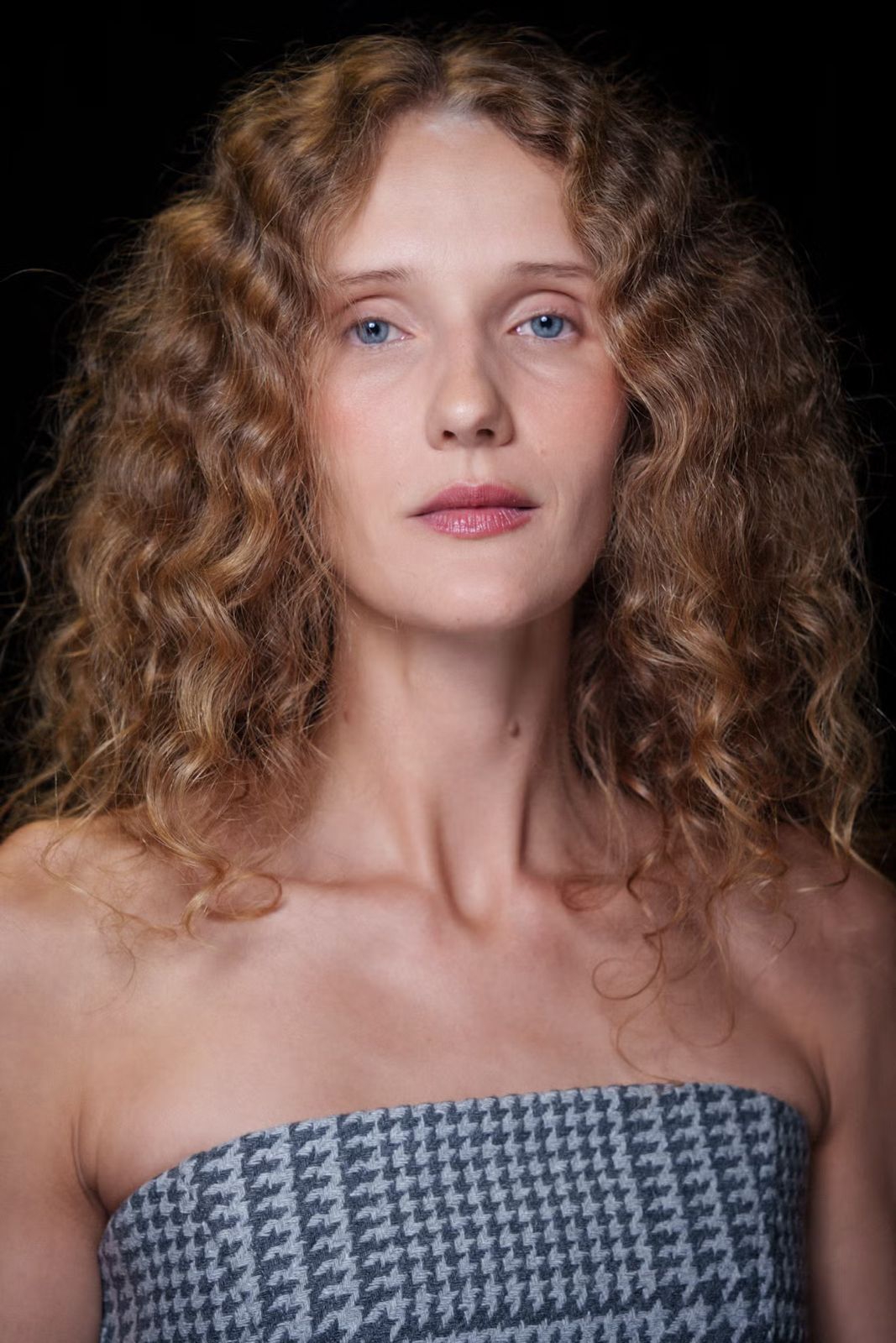 Gulungan ikal yang melimpah disematkan pada tempatnya untuk menciptakan tatanan rambut updo yang mudah namun tampak artistik di Giorgio Armani.