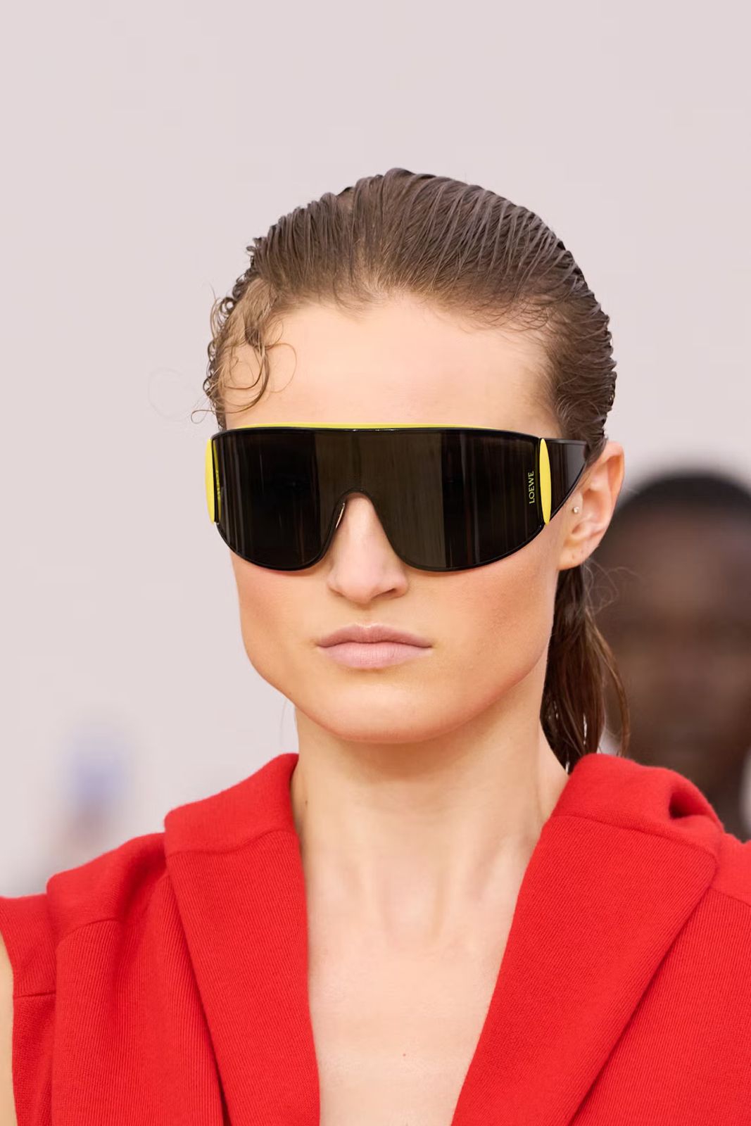 Loewe semakin menegaskan tren slicked-back untuk spring/summer 2026, dengan beberapa model mengenakan helaian rambut yang ditekan rapi di bagian pelipis kanan mereka.
