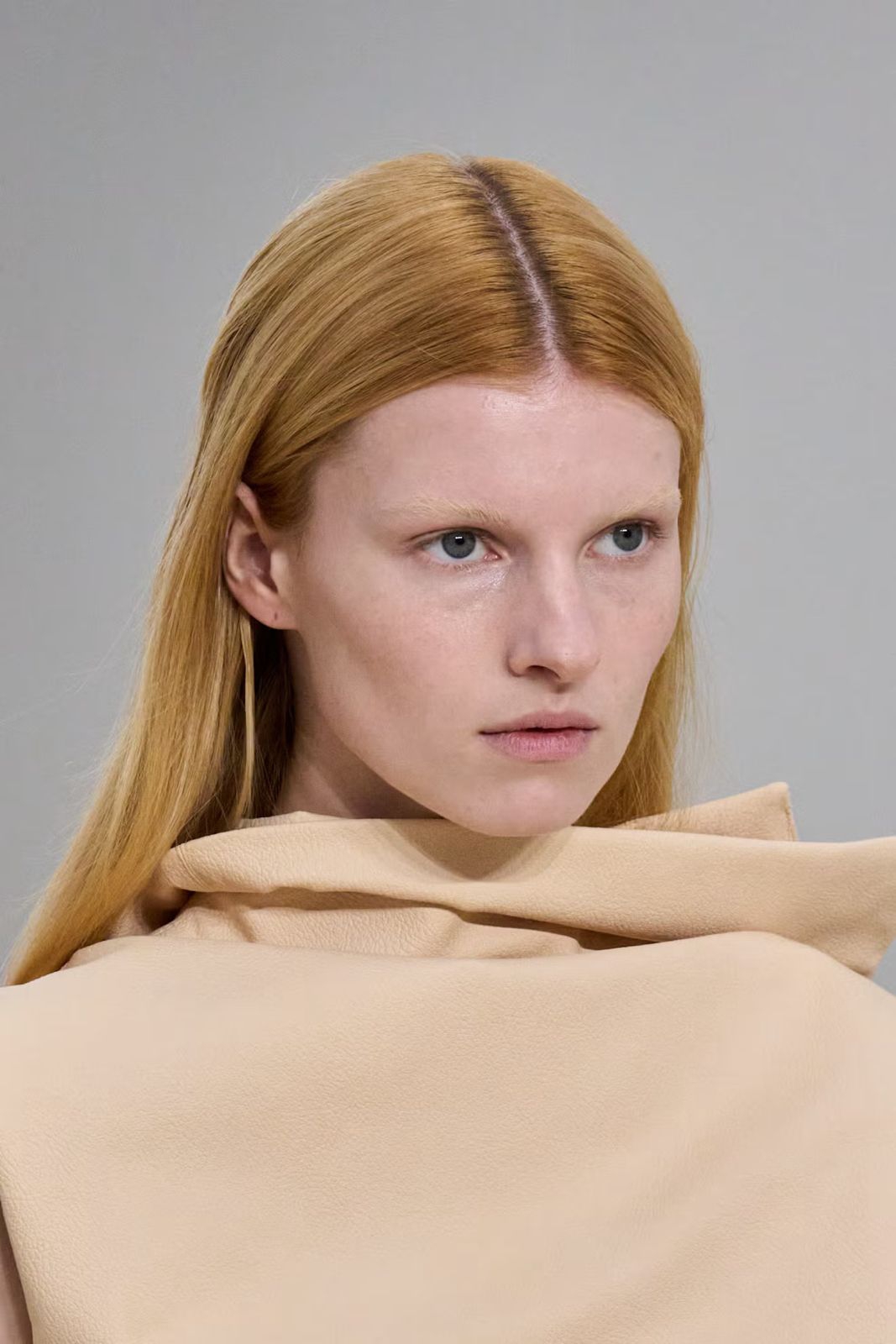 Di runway Off-White, rambut ditata menjauh dari wajah, seperti yang terlihat pada supermodel Iris Law, sehingga riasan natural yang glowing dapat benar-benar menjadi sorotan.