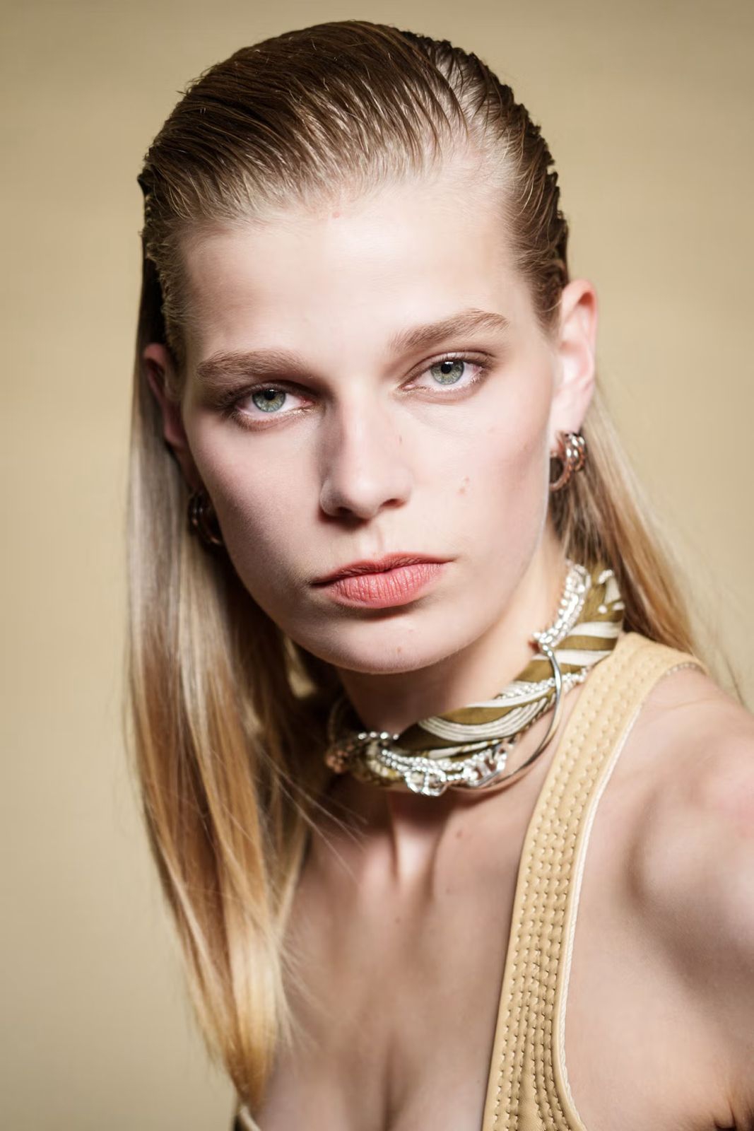 Gaya rambut slicked-back tampaknya akan tetap bertahan, dengan panjang rambut hingga pertengahan punggung yang memberi efek dramatis pada tampilan lurus sempurna yang disisir ke belakang di runway Courrèges.
