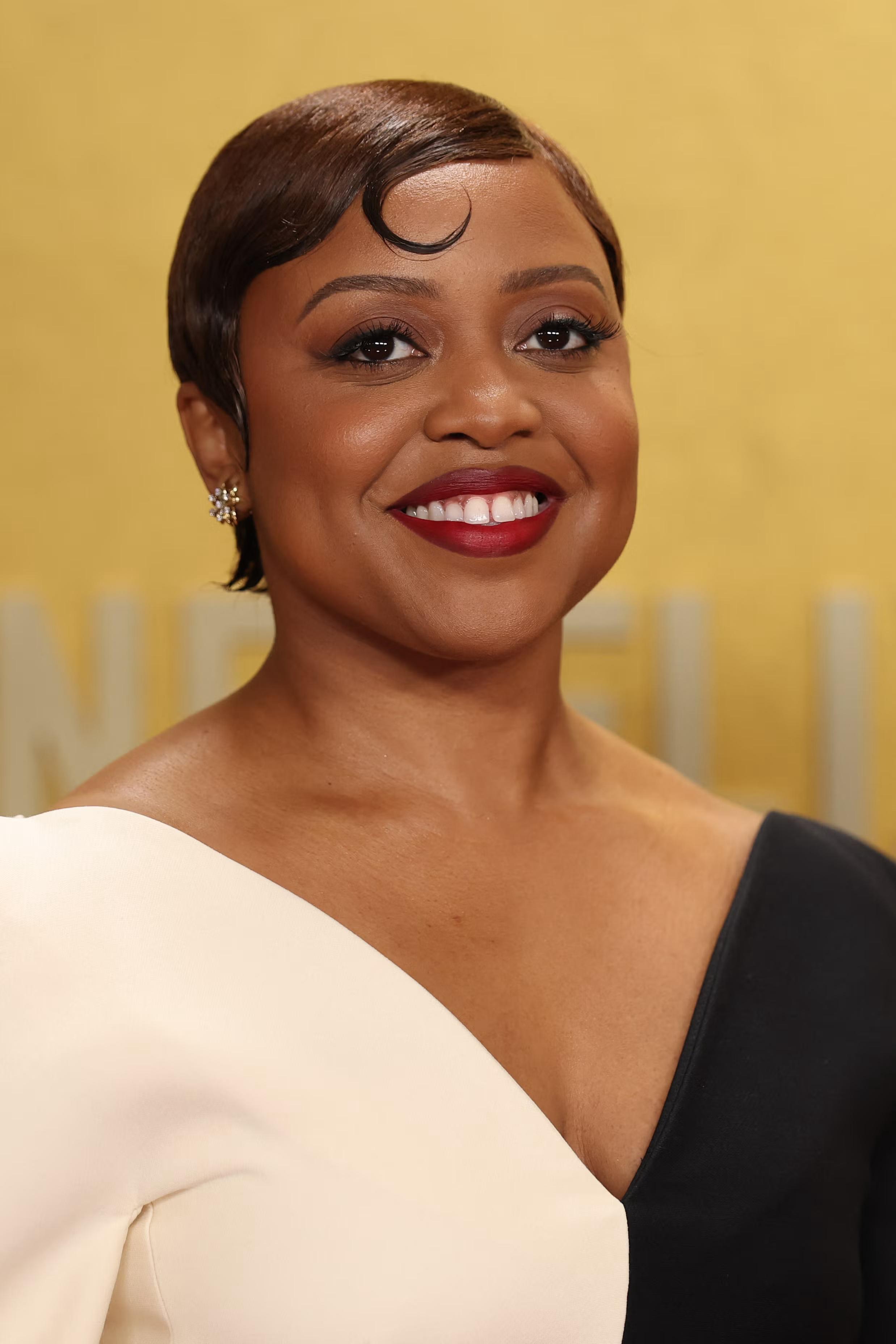 Gaya kiss curls yang terinspirasi dari vintage masih populer, seperti yang dikenakan oleh aktris dan produser Quinta Brunson di red carpet 2026 Actor Awards.