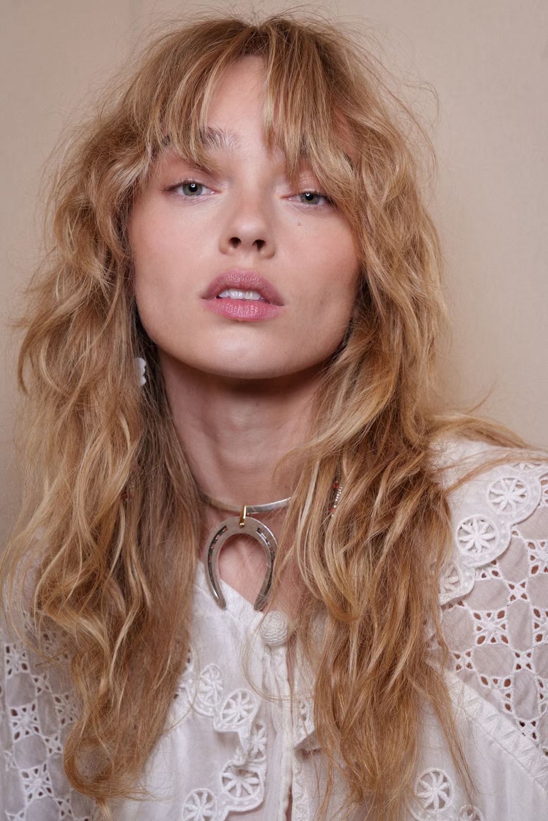 Tampilan rambut di show Zimmermann Spring/Summer 2026 menegaskan pesona poni yang carefree dan sedikit overgrown.