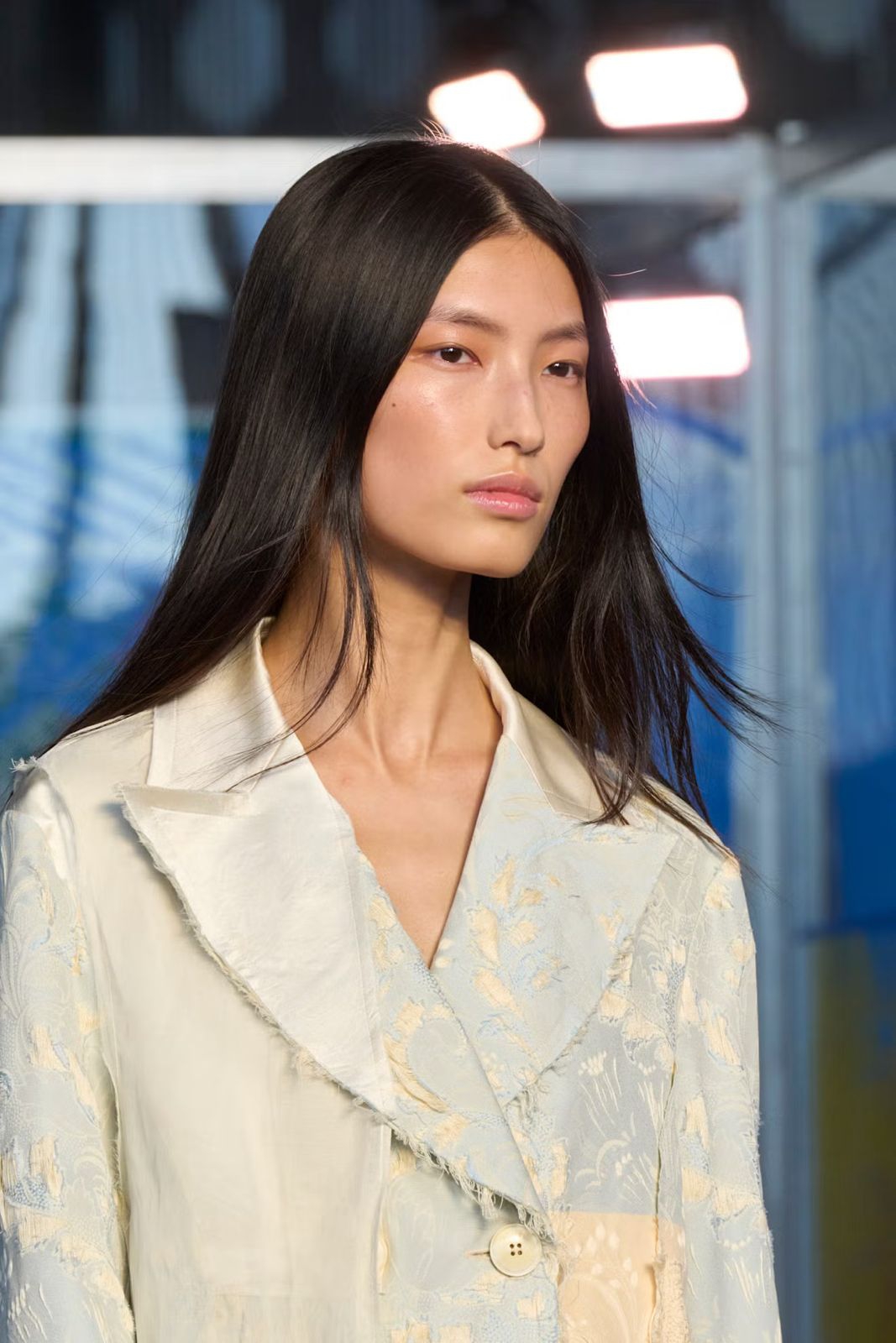 Di Area, rambut bone-straight membuat statement yang kuat di catwalk.