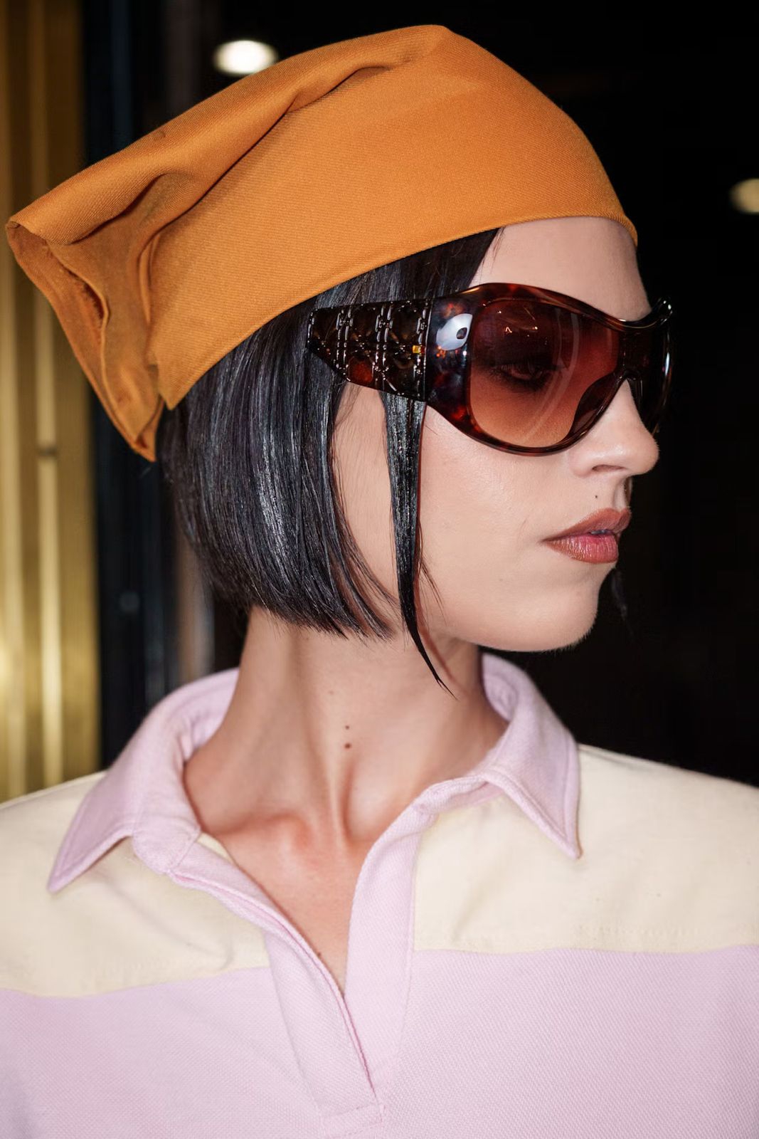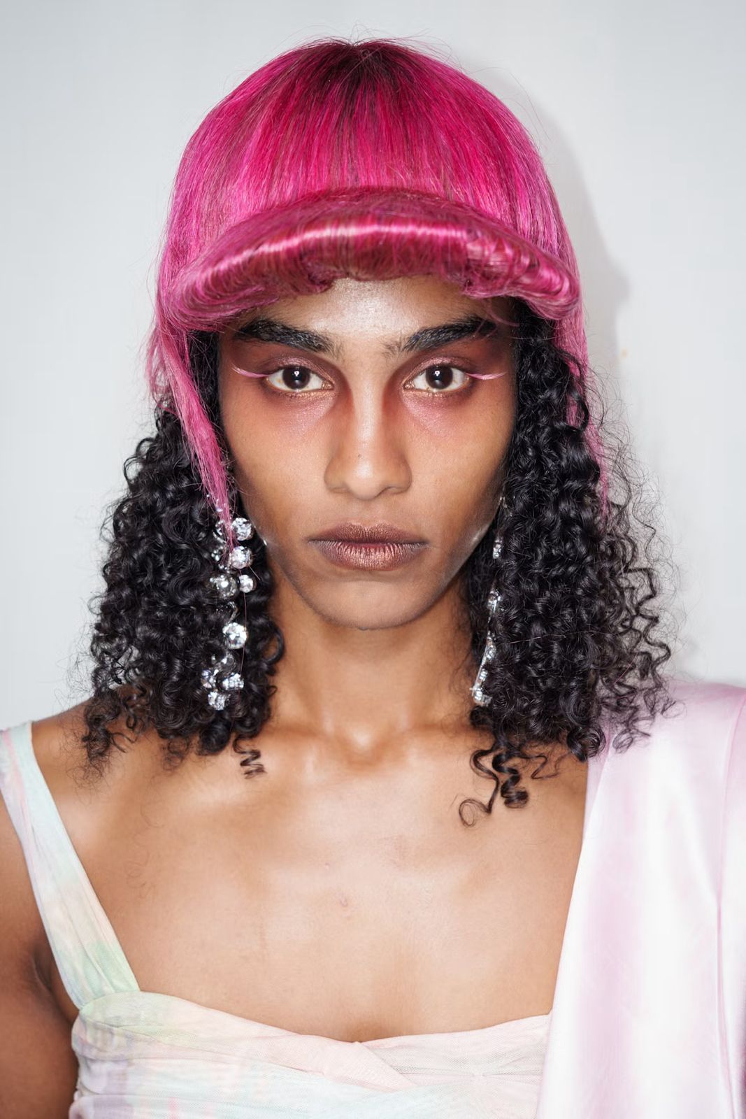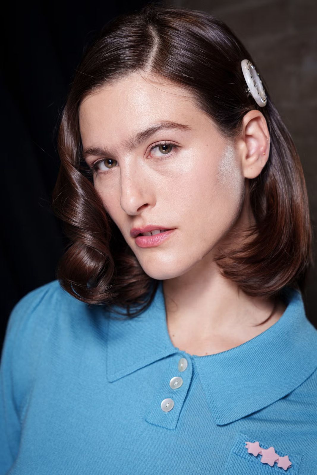 “Untuk beanie, saya ingin rambutnya terasa ringan dan playful, seolah memiliki energi statis. Saya menyiapkan rambut dengan Bb.Thickening Dryspun Texture Spray sebelum merajutnya yang memberi helaian rambut lift yang airy tanpa terasa berat, energi flyaway yang lived-in, seperti setelah meluncur di perosotan taman bermain,” jelas Mustafa. “Untuk baseball cap, dibutuhkan presisi lebih. Saya menggunakan Bb.Thickening Blow-Dry Prep Spray untuk menyiapkan rambut dan membentuk bagian brim, menjepit serta menyemprot rambut secara berlapis untuk menciptakan definisi yang tajam dan tahan lama.”