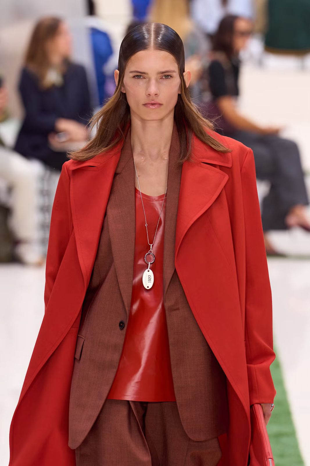 Di runway Hermès, gelombang rambut berkilau dan blowout dipadukan dengan sentuhan slicked-back yang presisi.