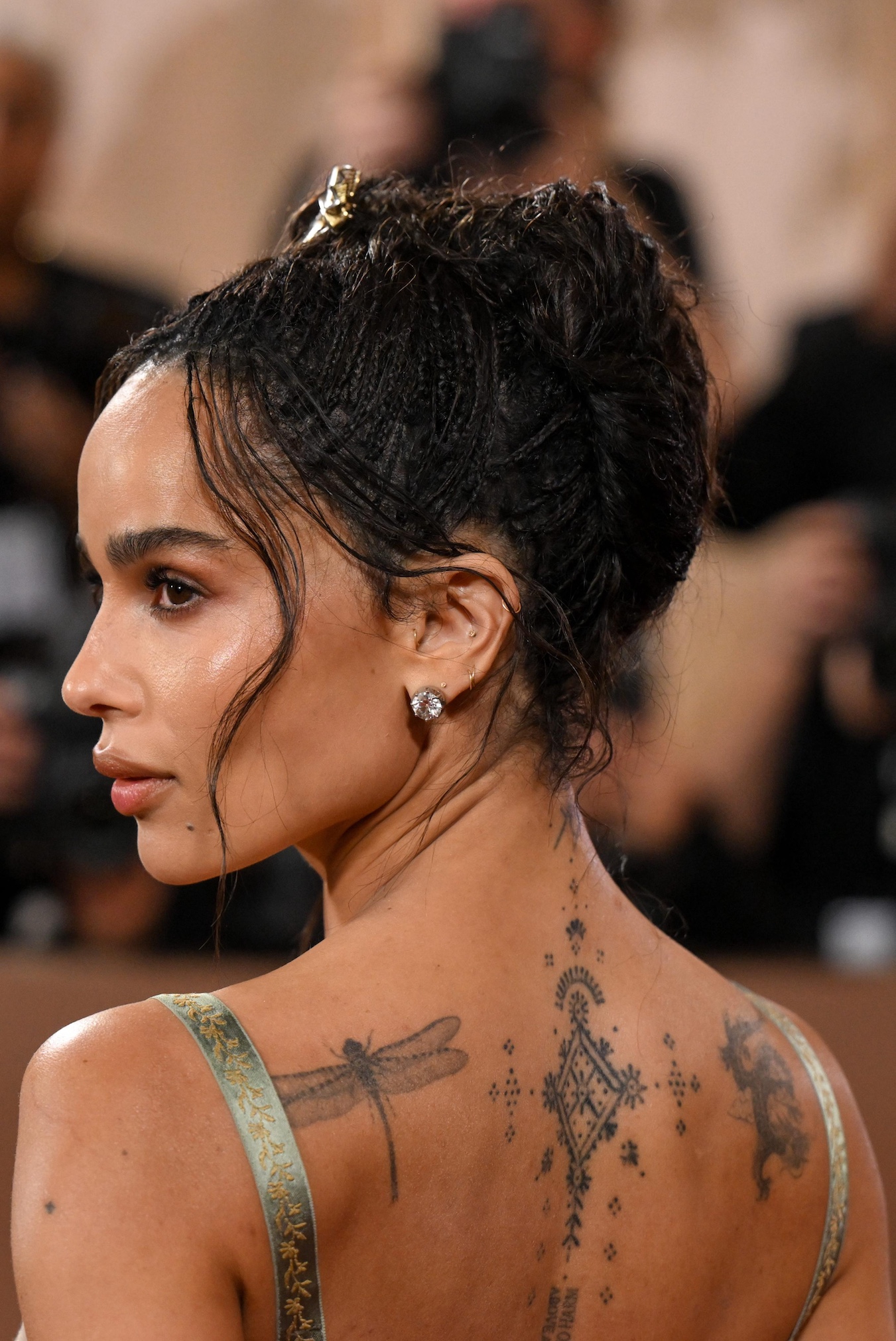 Zoë Kravitz menampilkan interpretasi khas dari gaya ini di Golden Globe Awards 2026, dengan sentuhan helaian rambut lembut yang membingkai wajah serta microbraids yang rumit. Tampilannya kemudian disempurnakan dengan floral barrette yang halus dan dipasang sedikit off-center, menambahkan sentuhan elegan ekstra.