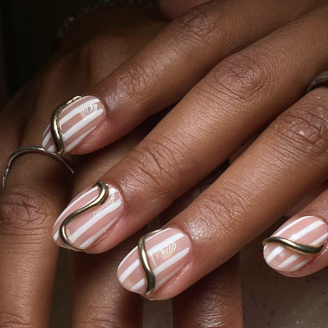 - French tip dengan gold outline