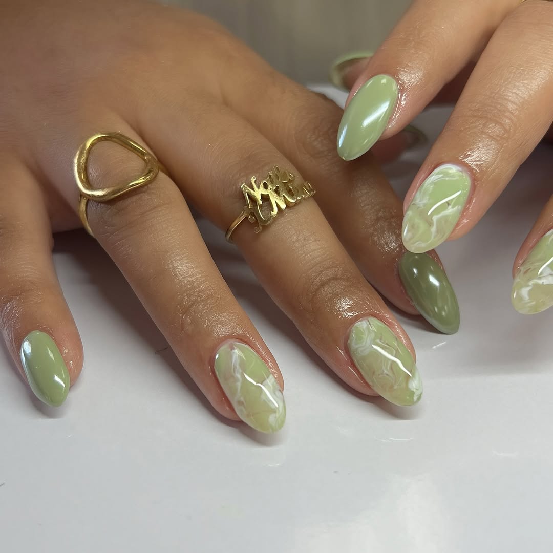 - Lime marble nail art