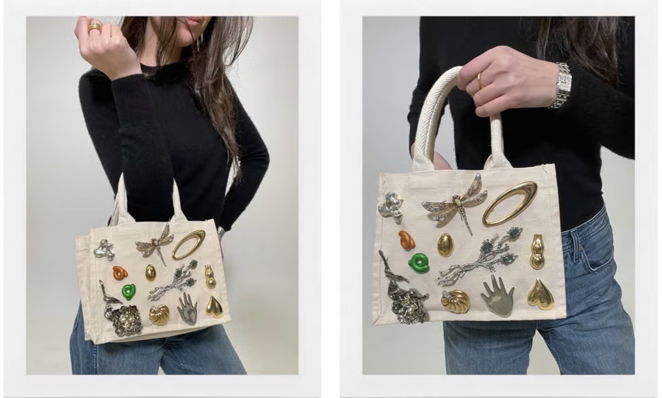 Hal terbaik dari bros adalah masing-masing memiliki karakter tersendiri. Beberapa memiliki makna sentimental, beberapa merupakan perpanjangan dari gaya pribadi, dan beberapa lainnya hanyalah pernak-pernik yang menyenangkan. Mencampurkan semuanya bersama benar-benar memanjakan mata. Kanvas terbaik untuk pernyataan maksimalis seperti ini adalah mini tote, jenis tas yang cukup kuat sehingga pin dapat tetap terpasang dengan aman. Untuk menambah dimensi, bermainlah dengan ukuran, skala, dan gaya. Hanya ada satu aturan: semakin banyak, semakin baik!