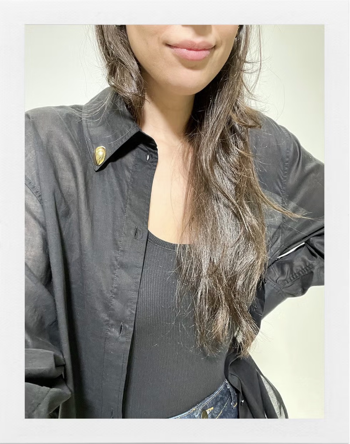 Untuk menciptakan pernyataan pada kemeja Anda, tambahkan bros bertabur detail pada ujung kerah. Gaya ini memang mudah memberi kesan western, tetapi Bazaar lebih suka menggunakan pilihan minimal atau vintage yang glamor agar tampilannya terasa lebih elevated. Cara ini langsung membuat kemeja yang dipadukan dengan jeans terlihat lebih rapi!