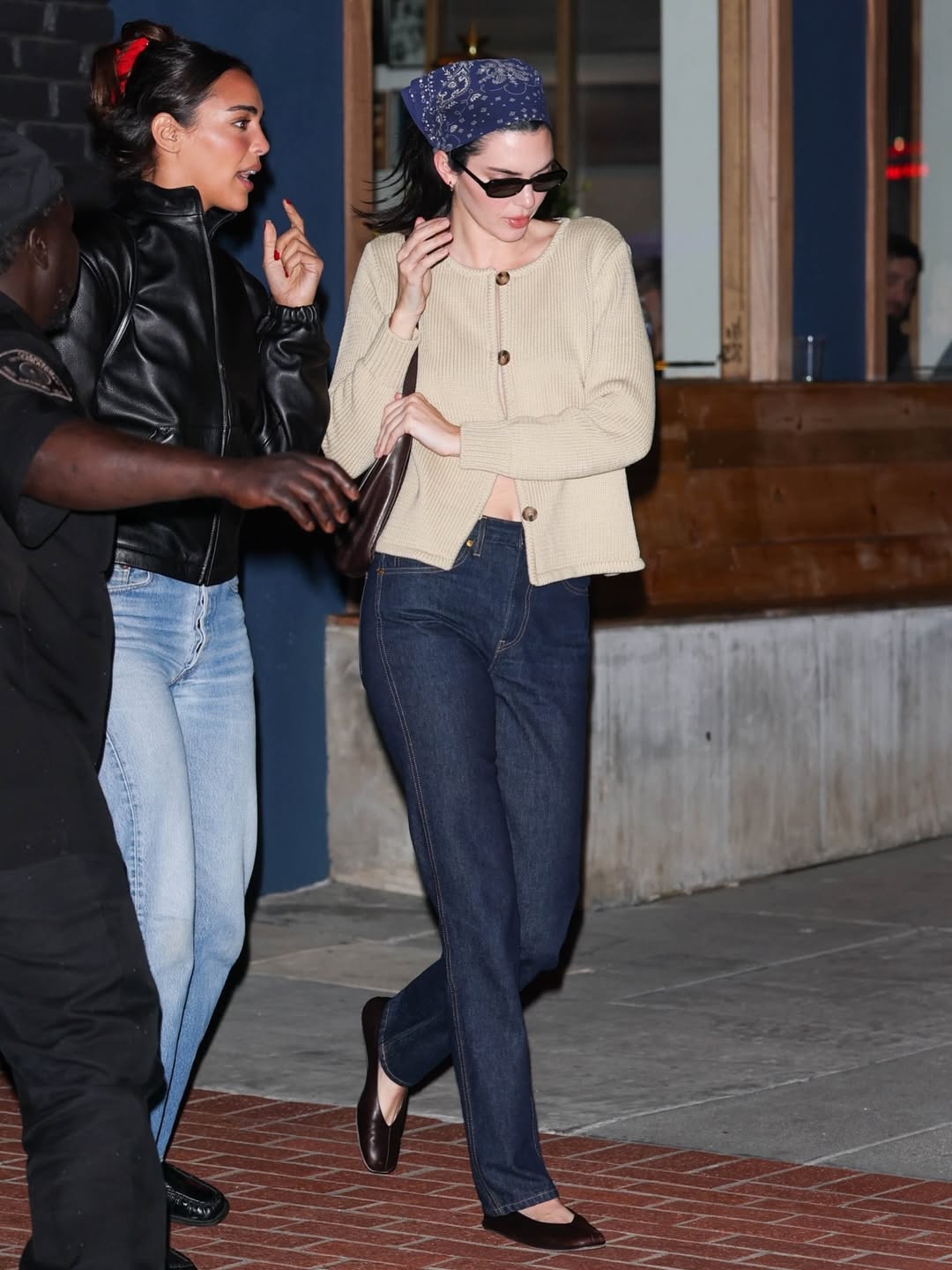 Pada Kamis malam, model tersebut keluar untuk makan malam bersama Hailey Bieber, mengenakan bandana biru tua yang diikatkan di rambutnya. Bandana tersebut memiliki motif paisley dan menambahkan sedikit sentuhan gaya western pada penampilannya di malam hari yang sebagian besar terdiri dari pakaian basic yang nyaman dan netral.
