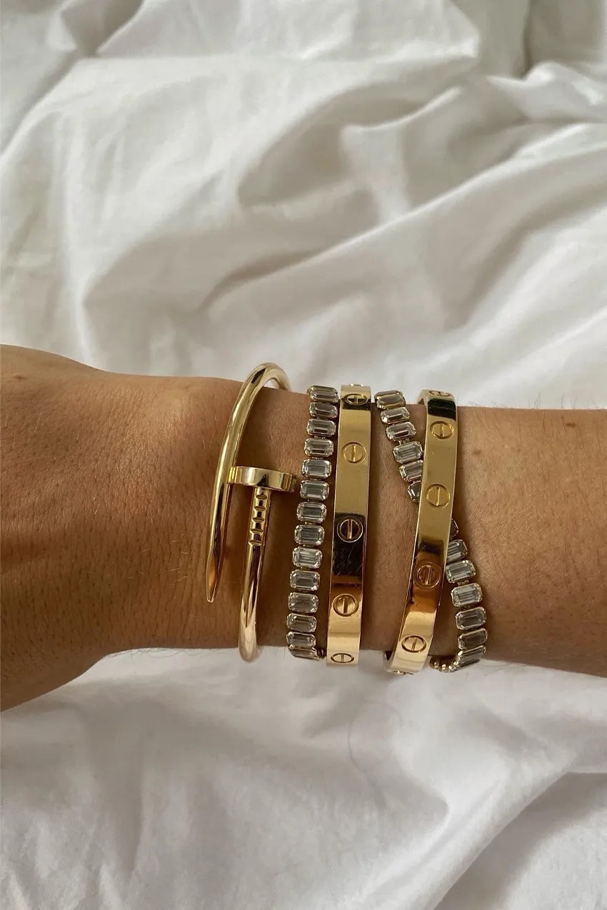 Tren layering atau memakai beberapa gelang sekaligus juga ikut mendorong popularitas gelang emas.