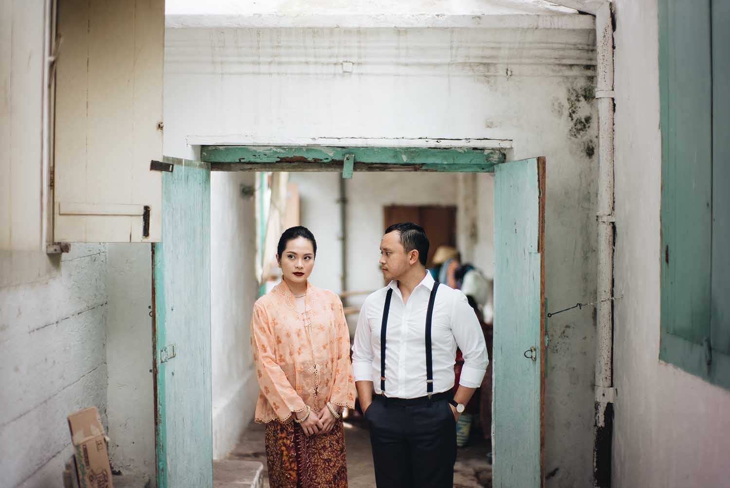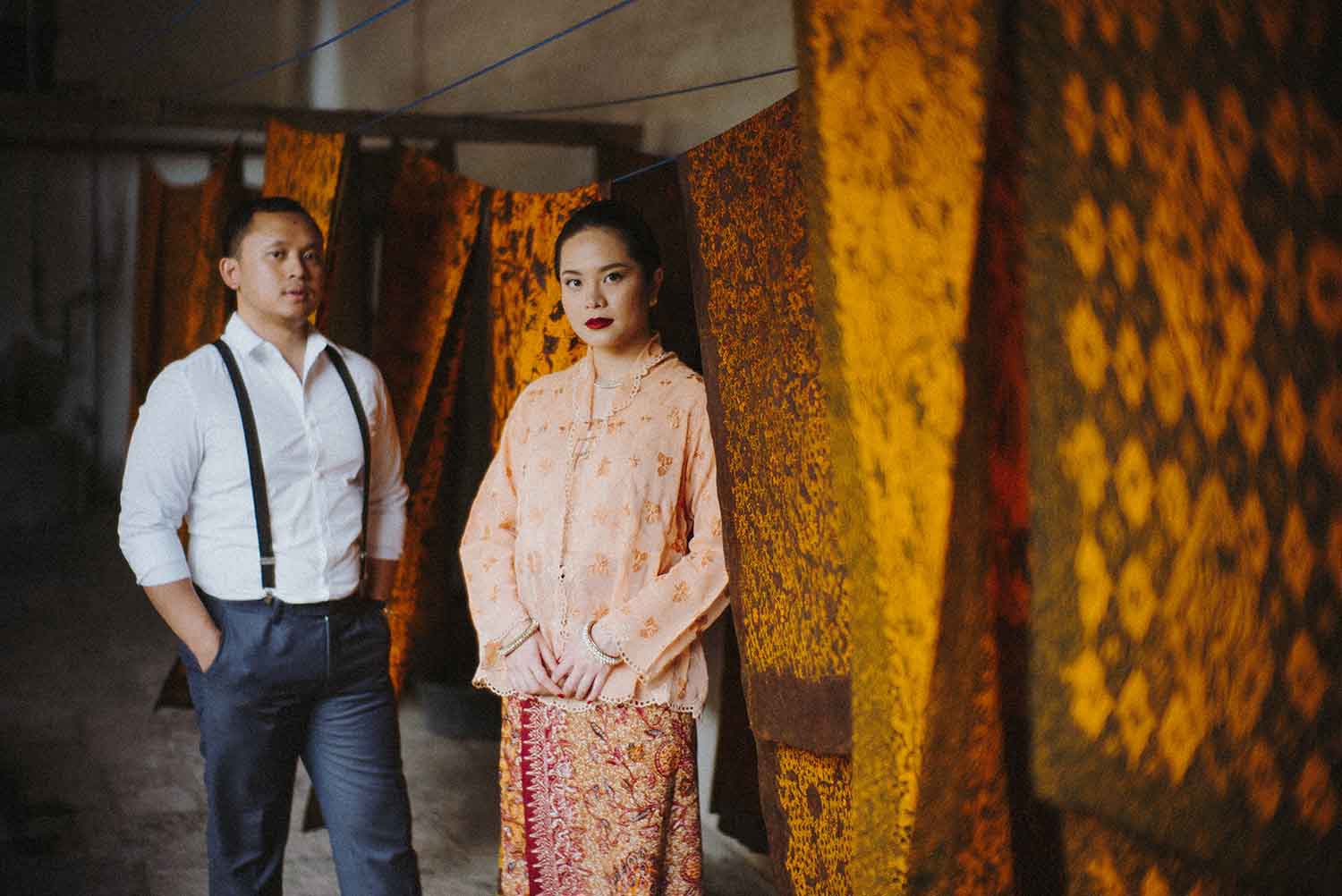 "Kami survei ke Lasem sekaligus memilih kain dan memesan kain kepada perajin langsung. Selang beberapa minggu kemudian foto pre-wedding dilakukan di sana. Lokasi beragam mulai dari rumah kuno bekas pabrik tegel, rumah batik Nyah Kiok, rumah batik Lumintu, lapangan pohon Trembesi, Rumah Merah Heritage Lasem menjadi latar sempurna pada sesi pemotretan ini," ujar Didiet Maulana.