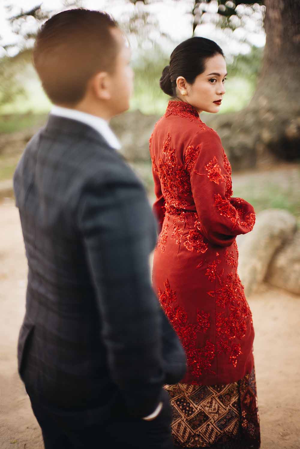 Tak hanya itu, sedikit pula calon mempelai yang percaya diri untuk mengenakan wastra, kebaya, atau aksesori adat saat sesi foto di luar ruangan tersebut.