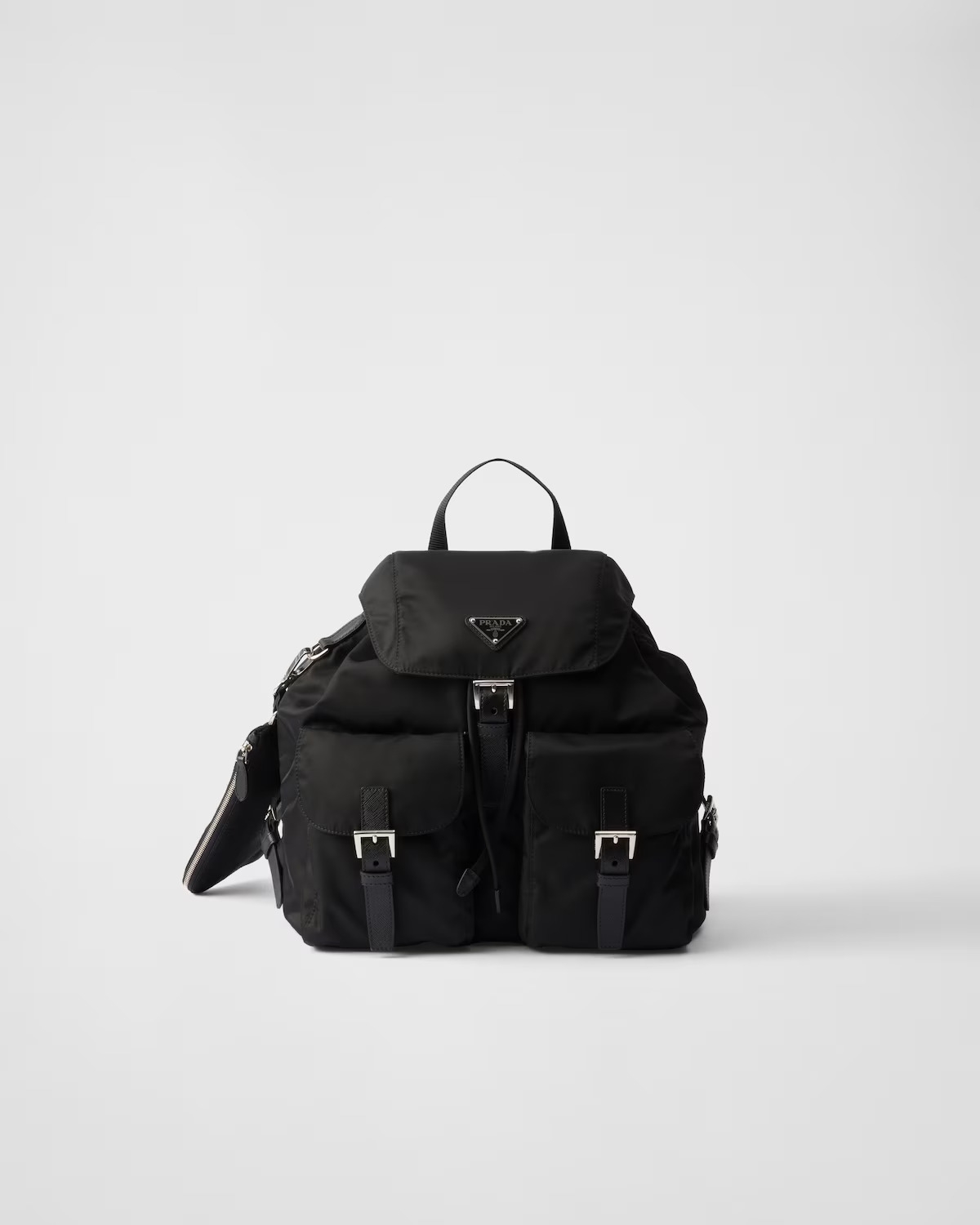 Tas ransel dengan gaya minimalis, modern, dan sangat versatile. Menggunakan bahan daur ulang dari limbah plastik laut, tas ini jadi pilihan smart dan stylish untuk daily wear. Ada kantong multifungsi dan logo segitiga ikonis Prada.