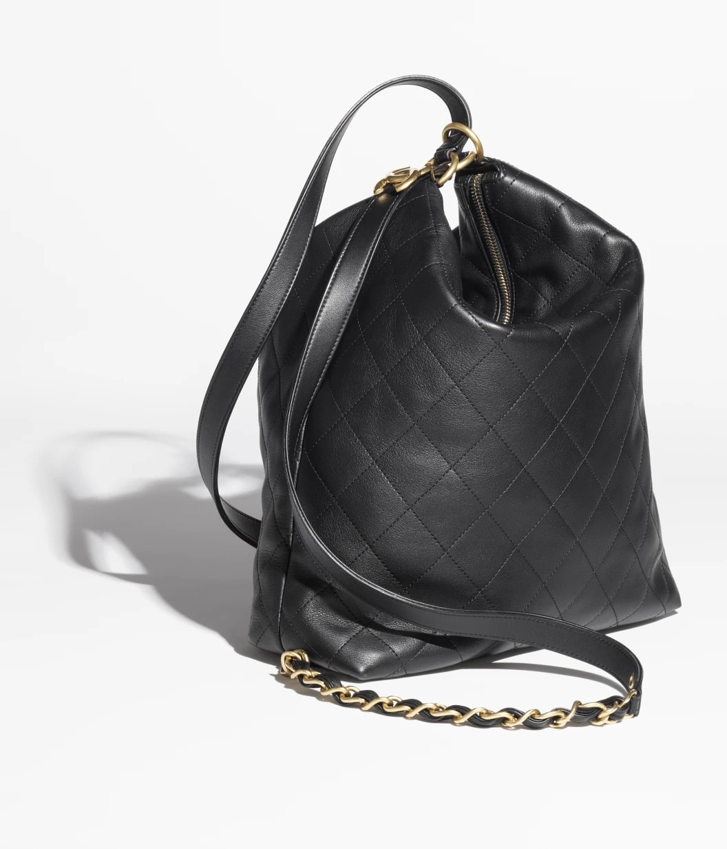Tas ransel Chanel ini menampilkan desain mewah nan minimalis dengan bahan kulit berlapis (quilted leather) berwarna hitam yang ikonis. Dilengkapi dengan tali rantai emas yang elegan serta tali kulit yang bisa disesuaikan, tas ini ideal untuk penggunaan sehari-hari.