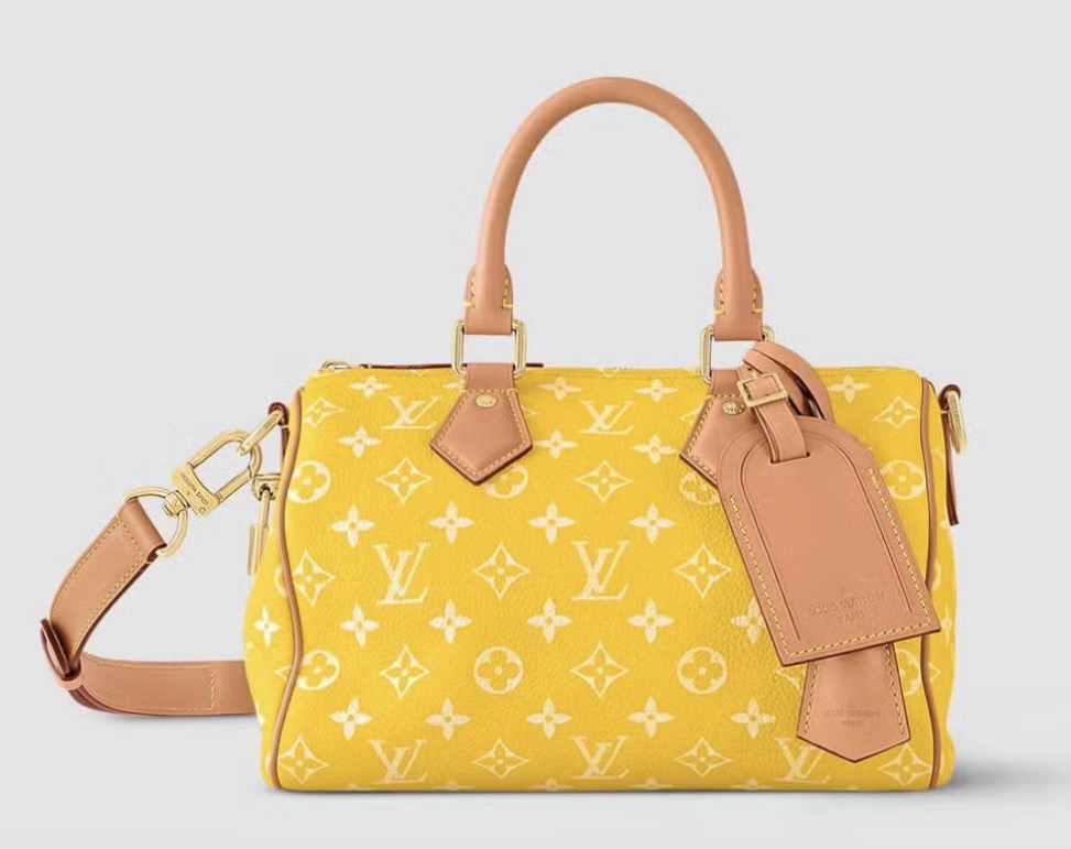 Sepatu boots kulit hitam setinggi lutut dari Alexander McQueen memberi keseimbangan pada keseluruhan tampilan (meskipun memiliki hak tinggi sekitar 10 cm), sementara tas Speedy kuning dari Louis Vuitton mengelevasi look ini ke level berikutnya. Dua Lipa menyampirkan tas berwarna cerah tersebut di lengannya, menonjolkan pegangan berwarna tan bentuk bulat, dan motif putihnya. Sebagai sentuhan akhir yang playful, ia menambahkan bag charm berbentuk gitar, membuatnya terasa sepenuhnya personal.