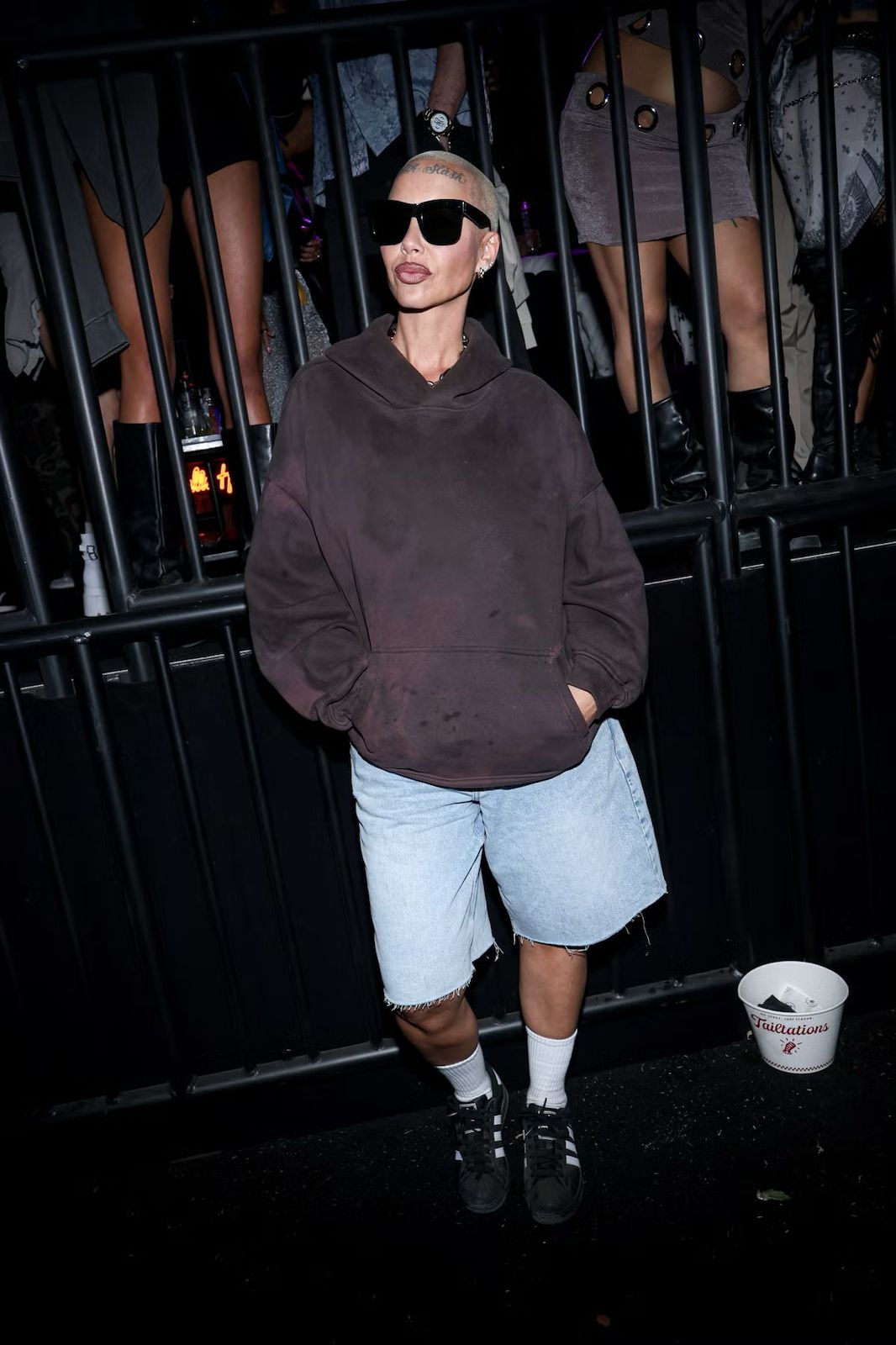 Ditambah celana pendek Bermuda yang bernoda cat, sepatu bot kerja, dan tas Hammitt berwarna oranye.