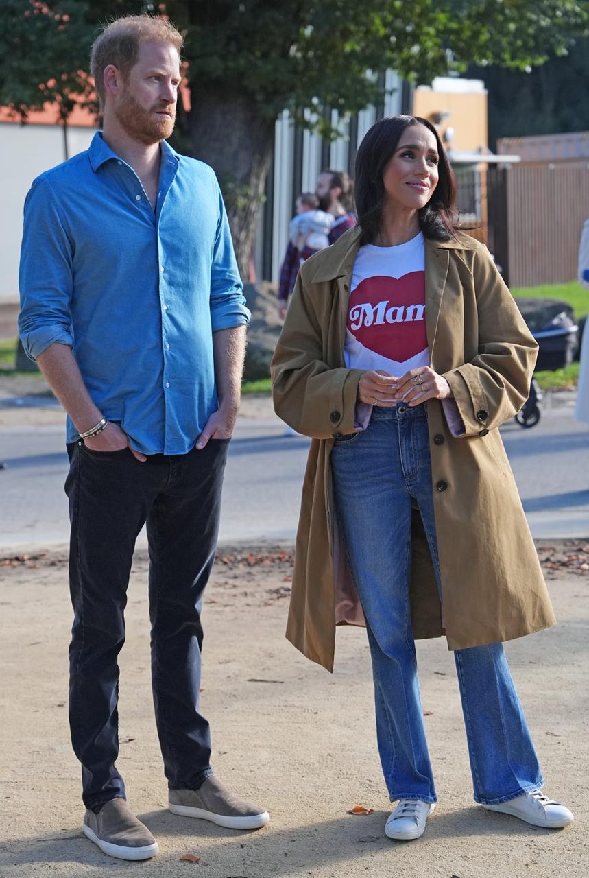 Dengan gaya santai di hari ketiga turnya, Meghan mengenakan kaus bergambar All Mama, All Heart sebagai bentuk dukungan untuk Alliance of Moms. Organisasi ini membantu “keluarga muda mengakses pendidikan pengasuhan anak, dukungan kesehatan mental, dan sumber daya yang mereka butuhkan untuk pulih, tumbuh, dan berkembang.”
