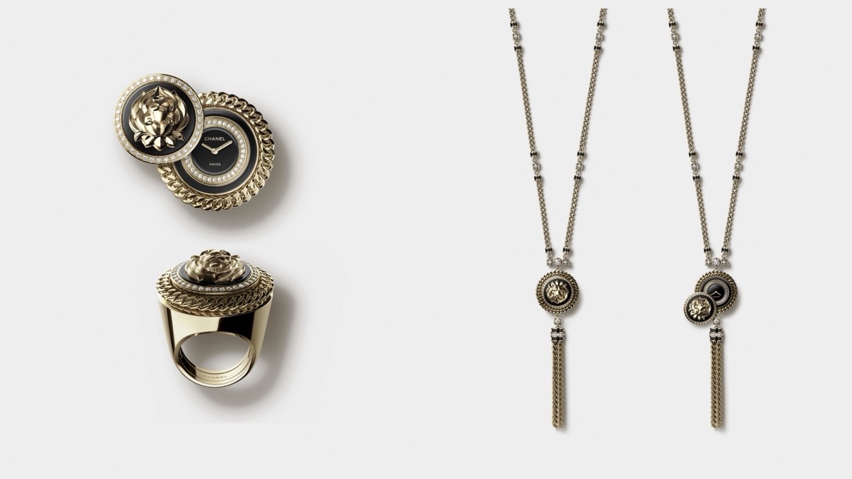 Eksplorasi artistik juga terlihat dalam lini Mademoiselle Privé Bouton Lion, yang menghadirkan jam tersembunyi dalam bentuk lion button. Hadir dalam format necklace dan ring, koleksi ini menonjolkan craftsmanship tinggi melalui ukiran dan pemasangan batu yang detail.