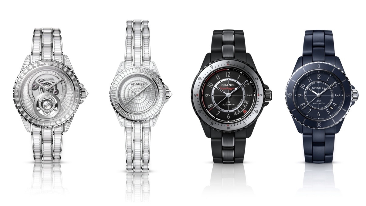 Chanel juga memperkenalkan J12 Diamond Tourbillon Caliber 5, sebuah jam haute horlogerie dengan flying tourbillon yang dihiasi berlian, serta J12 28 mm Diamonds yang tampil sebagai interpretasi penuh kilau dalam ukuran lebih kecil. Tidak ketinggalan, lini J12 diperbarui dengan warna baru matte blue ceramic dalam ukuran 38 mm dan 33 mm, serta eksplorasi ukuran baru 28 mm dan 42 mm, termasuk varian Golden Black dan Superleggera yang lebih sporty.