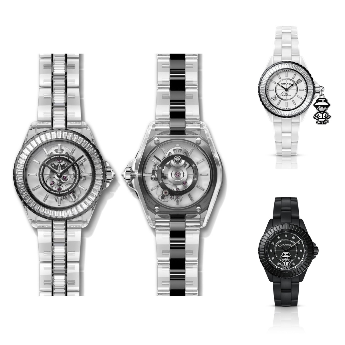 Di sisi yang lebih teknis, lini J12 kembali diperluas dengan berbagai model baru. Salah satu yang paling menonjol adalah J12 X-Ray Coco Game, jam transparan dengan sapphire crystal dan Caliber 3.1 yang memperlihatkan kompleksitas movement secara terbuka. Selain itu, hadir pula J12 Coco Game dengan elemen pixelated pada dial, serta versi Charms yang menghadirkan figur Mademoiselle dalam bentuk mini.