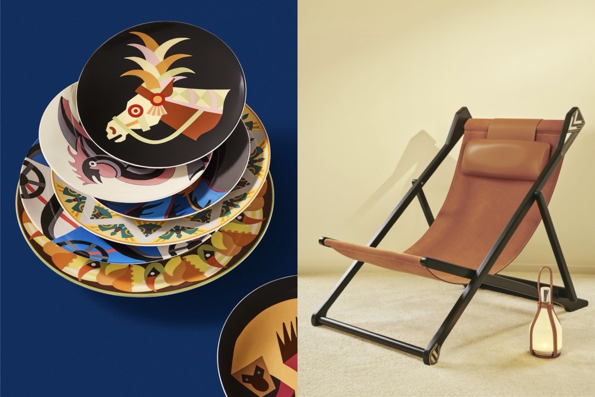 Louis Vuitton membangun narasi di Palazzo Serbelloni melalui Objets Nomades. Ruang disusun dalam tema-tema yang menggabungkan furnitur, tekstil, hingga objek dekoratif sebagai satu lanskap. Trunk ikoniknya ditampil kembali, termasuk eksplorasi kaca patri yang mengubah objek travel menjadi sesuatu yang lebih arsitektural.