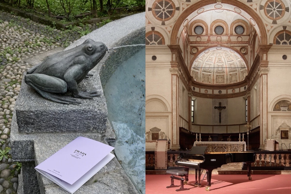 Prada memilih ide sebagai medium melalui Prada Frames bertajuk In Sight. Di Sacristy Santa Maria delle Grazie, panel diskusi, pembacaan teks, dan performative visit berlangsung dalam ruang Renaisans yang tenang. Walau tanpa objek utama, pengalaman sukses dibentuk oleh percakapan tentang citra, dari fotografi hingga algoritma.