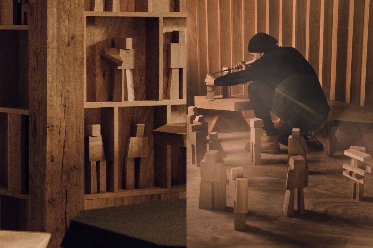 Byredo berkolaborasi dengan Jean-Guillaume Mathiaut menghadirkan kursi kayu sculptural. Dipahat utuh dan dilapisi tinta Jepang, permukaannya gelap dan matte. Disusun dalam pencahayaan hangat, ruang ini terasa tenang dan reflektif.