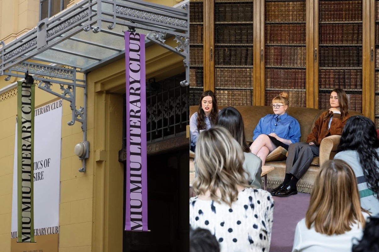 Miu Miu menghadirkan Literary Club bertajuk Politics of Desire di Circolo Filologico Milanese. Diskusi, pembacaan teks, dan musik membentuk suasana seperti salon literatur. Pembahasan sebagai sesuatu yang bergerak dari personal menuju ranah yang lebih politis.