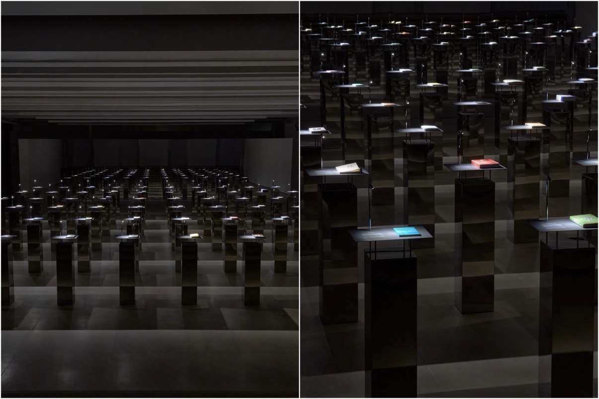 Jil Sander menghadirkan Reference Library bersama Apartamento. 60 buku dipilih dan ditampilkan di atas lectern krom dalam ruang dengan pencahayaan hangat dan dinding cermin. Pengunjung diwajibkan mengenakan sarung tangan putih, menjadikan membaca sebagai gestur yang lebih mindful dan intim.