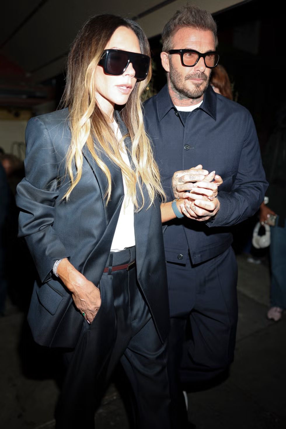 Untuk kesempatan tersebut, Victoria mengenakan blazer yang dilapiskan di atas kaus putih dan dipadukan dengan celana high-waisted senada, yang diikat dengan sash cokelat tipis. (Setelan itu tampaknya berasal dari lini miliknya sendiri, kemungkinan terdiri dari Tailored Jacket yang dipasangkan dengan Alina Trousers.) Ia melengkapi tampilannya dengan kacamata hitam oversize dari brand-nya sendiri, serta gelang berlian dan kalung rantai emas tipis.