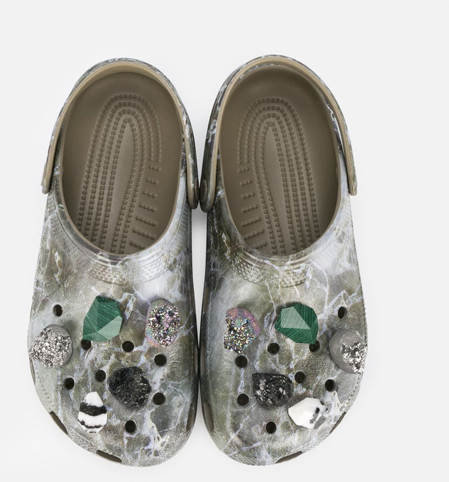 Cetakan serupa marmer terasa sangat membumi dan sering kali saya memikirkan sepatu Crocs di gaya tersebut, dikenakan dengan gaun malam atau celana denim, dan menambahkan kristal bebatuan yang mengetengahkan sedikit kemewahan di kehidupan sehari-hari.