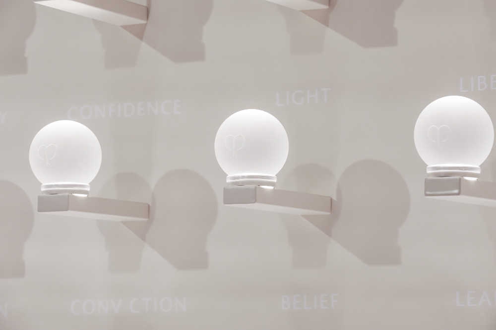 Tiap tamu yang memasuki ruangan ini akan diberi sebuah Clé ball berwarna transparan dengan lambang ikonis Clé de Peau Beauté. Kemudian kami dipersilakan untuk memajang Cle ball di papan sesuai kata favorit terkait Power of Radiance.